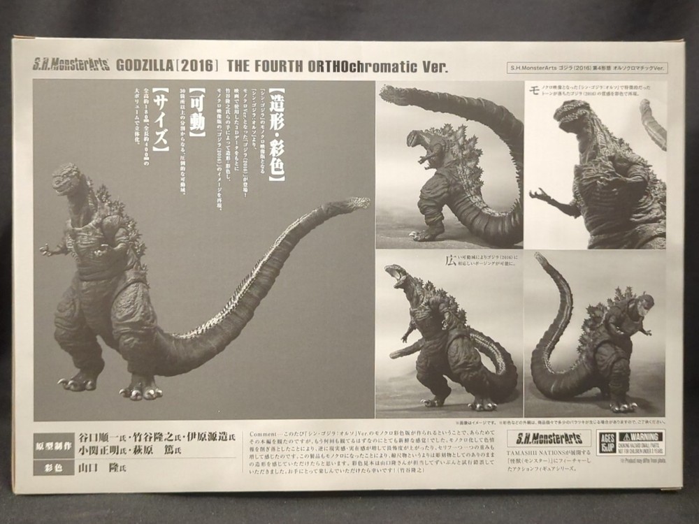 Title バンダイスピリッツ S.H.MonsterArts ゴジラ(2016)第4形態 オルソクロマチックver. Brand バンダイスピリッツ Series S.H.MonsterArts Item Name シン・ゴジラ:オルソ Item Condition 未開封 パッケージいたみ SKU nitem-00LC63V3 UPC 4573102668691 Size Approx 9.84 x 14.57 x 7.09in (250 x 370 x 180mm) Weight Approx 42.68oz (2.668lb 1210g) Import duties, taxes, and charges are not included in the item price or shipping charges. These are the responsibility of the buyer and are usually charged when the item is delivered if applicable. Please check with the customs office in your country for information about possible costs and charges. If you are eligible for free shipping, please note that taxes are not included (please do not confuse this with the domestic sales tax that eBay may charge). Please be sure to read all contents before purchasing. By placing an order with us you agree that you have read, understood, and agree everything below. While we aim to respond to inquiries within 1 to 3 working days, please be aware that there are times it may take longer. As our automated shipping process starts immediately once an order is paid for, this means that cancellation and other such requests may not be possible. Please do not place an order unless you are happy with the item. Everything that is included with this item is shown as shown in the pictures and described (as we may have more than one of this item in stock, the item shown in the pictures may not be the exact item shipped). If this item originally came with anything that is not shown in the pictures (cases, bonuses etc), then they are not included with in this listing . Please keep in mind that altho very rare, due to a data transfer delay between eBay and our warehouse, some items should have been removed from Mandarake's eBay listing. There will be times when we have to cancel an order due to this data transfer delay. Mandarake is now on eBay! Now you can find our wonderful selection of books, toys and figures from anime, manga, games, cards, cosplay goods, j-pop goods and other Japanese popular culture and more right here! We also have our fantastic dolls and old-school toys too. All of our items are shipped straight from our warehouse in Katori, Japan to your door! Check out our other eBay listings here! General Conditions Since all of our items are second hand, they may have slight signs of damage, such as minor scratches. If the item has noteworthy damage it will be mentioned above. Please note that items with clear cases are likely to have discoloration that is not clear in the pictures. Everything that is included with this item is shown as shown in the pictures and described (as we may have more than one of this item in stock, the item shown in the pictures may not be the exact item shipped). If the item originally came with anything that is not shown in the pictures (cases, bonuses etc), then they are not included with in this listing . Please note that some product boxes may show other items from the same series, but they are not included unless otherwise noted. Condition Rating Details: 10-point Scale (10) Mint / Like New (9) Excellent to Near Mint / Very good condition for a used item (8) Great / Relatively good condition for a used item (7) Good / Average condition for a used item, with some minor damage (6-5) Average / Decent. Contains damage from external factors like fading, yellowing, stains, wear. (4-3) Fair/ Acceptable. Noticeable damage, including, tears, missing or damaged parts, discoloration, and wear. Suitable for enjoying as an item but not for collection. Some integral extras may be missing. (2-1) Mediocre / Poor. Not for collectors, As is. The severity of damage decreases as the score decreases, which is reflected in the price. Evaluation criteria may vary depending on the publication date, book binding, and characteristics. Actual product condition may differ slightly from the images. Regarding first editions, reprints, and the presence of dust jackets, this information is stated in the title or product description. If not specified, these details cannot be selected. Please refer to the product details section for information on included accessories. Please Keep the following in mind Items are not hand-signed unless specifically mentioned. Items that are 'Motor Powered' may not include a motor. Items that are noted as unopened/resealed have not had their condition checked beyond what we can see from outside as we cannot open the package. The size displayed on the listing includes the package of the item and is not the dimension for the item itself. If the item is inside a plastic bag, the dimensions displayed on the listing are the dimensions of the bag flattened out. Unopened items are sold as is, and cannot be returned as faulty if you open the package (you will need to contact the manufacturer for assistance). We cannot be held responsible if an unopened item is opened by your local customs office. Unopened items, especially old electronics, may no longer be working and are sold as not working. Some items, such as books, may be shown in the pictures as wrapped. This is to protect them while they are in the warehouse, they are not brand new unless specifically mentioned. Please assume all items are in Japanese if not specifically stated as so. This includes Books, DVDs, and any other item that may be Language dependent. Conditions (More Information) Sometimes items have single word descriptions for their conditions. Please use the following guide for more information on item conditions. Unopened / Not Opened - The item is still sealed, the contents are unused. Please note that we have not checked the condition beyond what we can see from outside as we cannot open the package. Unopened items are sold as is, and cannot be returned if they are faulty if you open the package. We cannot be held responsible if an unopened item is opened by your local customs office.