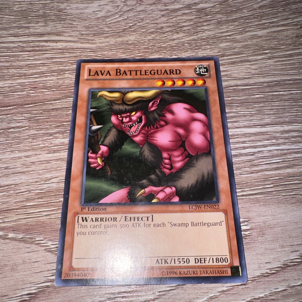 Absolutely thrilled with this Lava Battleguard card! It arrived in perfect condition, just as described—crisp edges, no scratches, and the 1st Edition stamp looks great. The seller was clear about the stock photo and made sure details like rarity and condition were upfront. Super happy to add this classic Joey Wheeler card to my collection, and the shipping was fast too. Highly recommend this seller for Yu-Gi-Oh singles!