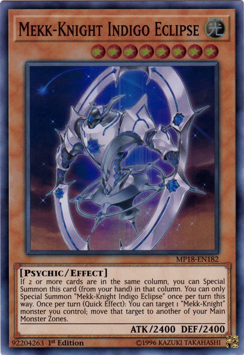 PICTURE IN LISTING IS ONLY FOR EXAMPLE ,it is a stock picture. Item condition is listed as "Used" because Ebay requires UPC codes for any item that is listed as "New", and trading cards do not have UPC Codes, so they must be listed as "Used". Card condition is listed in the listing title and in the item description. Rarity and edition of the card are described in the listing title and description. From this listing you will receive 1 card(s) for each purchase Description Set : 2018 Mega-Tins Name : Mekk-Knight Indigo Eclipse Number : MP18-EN182 Rarity : Super Rare Condition : Near Mint Language : English We get your package in the mail quickly, please rate our service based on how quickly we gave your package to the post office. Not on how long it took the post office to deliver it. As we all know we cannot control that. If you have concerns about our shipping service, please send us a message and we will gladly talk to you about it and explain it. Domestic Buyers: Domestic orders within the United States are shipped for one flat rate, no cost for additional cards purchased on the same invoice. International Buyers: International orders are shipped First Class Mail International with and an additional item fee of $0.50. Orders over $50.00 USD require additional postage fees because of shipping method changes. SPECIAL REQUIREMENTS For International Orders Any International order greater than $100.00 USD will require shipment by : USPS Global Express Mail This is a flat rate service and you may ship cards totaling up to 16 ounces, the weight limit on the package. The following International Countries can request USPS First Class Mail International Package as the shipment method for orders over $50.00 USD as this service provides electronic tracking to these countries. This service is more expensive than the normal USPS First Class Mail International service, but cheaper than USPS Priority Mail International. Australia Gibraltar Netherlands Belgium Great Britain New Zealand Canada Hungary Northern Ireland Croatia Israel Portugal Denmark Latvia Singapore Estonia Lithuania Spain Finland Luxembourg Switzerland France Malaysia Germany Malta Special Handling of International orders : We reserve the right to hold and/or cancel any International order in which it appears the buyer is attempting to circumvent our Global Express shipping requirements by breaking up larger purchases into smaller orders. Orders made within a 30 day window and having previous orders that have not yet been acknowledged as received, via Feedback and Ebay messages will be subject to this condition and may be held until all previous orders have been acknowledged as received. International Buyers – Please Note: Import duties, taxes and charges are not included in the item price or shipping charges. These charges are the buyer's responsibility. Please check with your country's customs office to determine what these additional costs will be prior to bidding/buying. SHIPPING: Every attempt is made to send your item out within 1 business day of receipt of payment. Check our feedback! Pre-sell items are shipped within 1 business day of us getting merchandise in hand. Default Shipping Methods: Domestic Orders: Shipped First Class Mail Cards will be shipped with a Hard Sleeve and/or a Soft Sleeve for protection in accordance with eBay's standard envelope policy. International Orders: Shipped First Class Mail International Cards will be shipped with a Hard Sleeve and/or a Soft Sleeve for protection in accordance with eBay's standard envelope policy. We use all new and clean products to package your cards. If you have any questions, please do not hesitate to ask!
