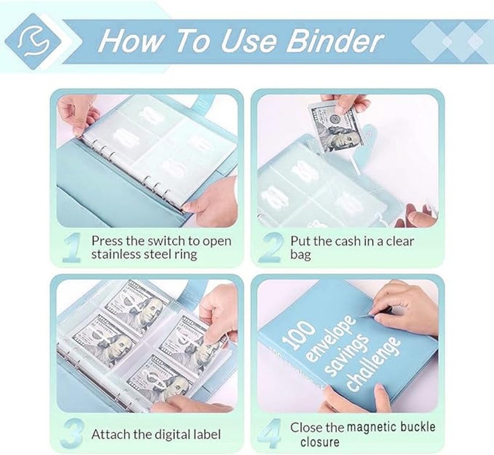 100 Envelope Challenge Budget Planner $5,050 Money Saving Cash Challenge Book A5 Budget Book with Cash Envelopes Kit 9.25" x 7" Color = Blue About this item 100 ENVELOPES MONEY SAVING CHALLENGE KIT This envelopes challenge kit is designed to help you save money in a fun and organized way. It comes with 1 PC A5 size PU binder, 25 pcs 6-hole cash envelopes which printed with number 1-100, and 2 sheets trackers, providing a easy method to save up to $5,050. PREMIUM MATERIAL The binder is made of soft and durable PU fabric, neatly stitched, envelopes are transparent, waterproof and scratch-resistant, protect your cash from water and dust. The binder is compatible with all standard A5 size 6 holes inner pages, so you can easily add or remove pages as needed. The compact size of the cash binder allows you to take it with you wherever on your daily commute, to work, or even on vacation. ENVELOPES WITH ENLARGED PRINTED 1-100 IDENTIFIERS Unlike other envelopes pages without numerical numbers or require manual pasting of stickers, our envelopes pages feature clearly printed and enlarged numerical numbers, making them more convenient to use. You can find the envelope you need at a glance. ESSENTIAL TRACKER CARDS FOR THE ENVELOPES SAVING CHALLENGE To enhance your tracking experience, this set contains two tracking cards. These cards help you monitor your savings progress and motivate you to achieve your goals on time. When you save a certain amount, just mark the corresponding number icon. Once all icons are marked, the savings challenge is completed successfully. This method makes tracking your savings progress effortless. A PRACTICAL AND EDUCATIONAL GIFT The 100 envelopes money saving challenge binder kit is a practical and educational tool that encourages family involvement in saving money.By engaging in savings challenges, individuals can have fun while taking charge of their finances.It is a thoughtful and practical gift for friends and family to easily save spare change and start working towards their financial goals. Never Used Fast Shipping! Condition's Descriptions Brand New A new, unread, unused book in perfect condition with no missing or damaged pages. See the seller's listing for full details. Like New A book that looks new but has been read. Cover has no visible wear, and the dust jacket (if applicable) is included for hard covers. No missing or damaged pages, no creases or tears, and no underlining/highlighting of text or writing in the margins. May have very minimal identifying marks on the inside cover. Very minimal wear and tear. See the seller’s listing for full details and description of any imperfections. Very Good A book that does not look new and has been read but is in excellent condition. No obvious damage to the cover, with the dust jacket (if applicable) included for hard covers. No missing or damaged pages, no creases or tears, and no underlining/highlighting of text or writing in the margins. May have very minimal identifying marks on the inside cover. Very minimal wear and tear. See the seller’s listing for full details and description of any imperfections. Good A book that has been read but is in good condition. Very minimal damage to the cover including scuff marks, but no holes or tears. The dust jacket for hard covers may not be included. Binding has minimal wear. The majority of pages are undamaged with minimal creasing or tearing, minimal pencil underlining of text, no highlighting of text, no writing in margins. No missing pages. See the seller’s listing for full details and description of any imperfections. Acceptable A book with obvious wear. May have some damage to the cover but integrity still intact. The binding may be slightly damaged but integrity is still intact. Possible writing in margins, possible underlining and highlighting of text, but no missing pages or anything that would compromise the legibility or understanding of the text. See the seller’s listing for full details and description of any imperfections. If you any questions please feel free to ask! Enjoy! That's it! Thanks for lookin' and enjoy eBayin' Powered by SixBit's eCommerce Solution