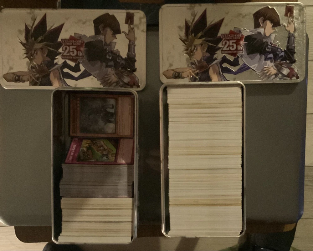 I REALLY NEED THESE TO SELL NOW; AS IN NOW This is an assorted lot of 1907 total Yu-Gi-Oh Cards (added 71 cards to this lot as of 5/10/25). Including some very old and very new cards, which includes 19 25th Century Rarity Cards. Some have been used and others have 100% never been played. They’re stored in a Yu-Gi-Oh Legendary Decks II Box. Two cards and a Token Card have never been removed from their shipped in plastic wrapping. Recently my HP Pavilion g7-1310us Notebook PC died where it won’t turn on. All these cards’ photos were taken on top of the lid of that dead computer. I’m selling these cards so I can actually get myself a new laptop. Thus included here are some Kashtiras that I wanted to save along with some other Tier & Meta Cards. The price I’m selling these for is just slightly over the cost for the new laptop I really need to get or I won’t be able to cont my work on projects and for my volunteering at my church. ***** Added 816 + 71 more cards as well as an unopened box of: Legendary Duelists Synchro Storm. These new additional totaling an extra 887 cards come inside two (2) Yu-Gi-Oh 25th Anniversary Dueling Mirrors Tin. All of these tins, box and unopened Legendary Duelist box are all packaged inside a shoe box for shipping safely as is allowed by my local US Post Office.