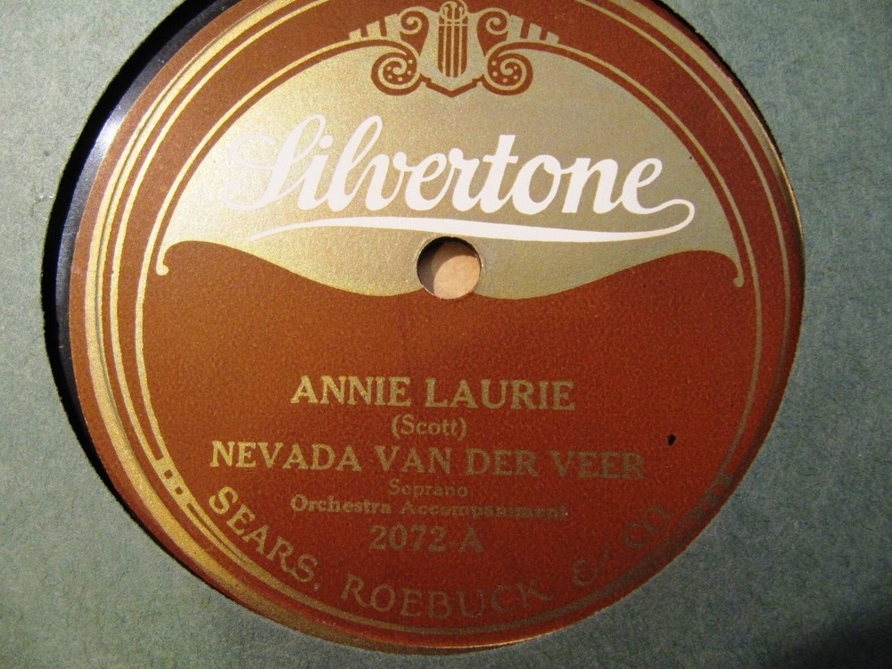 Shipping: All items will be packed safely in a sturdy package for safe shipping. We ship internationally and offer combined shipping for multiple purchases. Expedited, Priority Mail and FedEx shipping available Once payment is received, we ship your item on the next business day. INTERNATIONAL BUYERS: Pls check the shipping tab. Ebay does not display cheapest shipping on top of the listing. Over 1000 Records available. If you plan to buy several records: Click the "ADD TO CART" button. Once you have selected all the records you want, go to Cart and check out. COMBINED SHIPPING will be applied automatically. If shipping seems high: In Cart click REQUEST TOTAL, and I will send you an invoice. A series of great OPERA Records from early G&Ts to World War II recordings on 78 rpm Victrola Records Click this link for more great Opera and Vocal Records in my other listings! Nevada Van der Veer, from a 1921 publication. NEVADA van der Veer, a Mathilde Marchesi student the well-known American Contralto, whose sympathetic, luscious voice had previously charmed English audiences ... Nevada Van Der Veer – Annie Laurie / Comin' Thru The Rye Label: Silvertone – 2072 from Arto Master 3077 A Annie Laurie B Comin' Thru The Rye Orig Issue Silvertone from Arto/Bell Master 10" 78 rpm. CONDITION: EXCELLENT close to PRISTINE faint scuffs, plays EXCEPTIONALLY quiet A SUPERB COPY Veer, van der Nevada, Old, * 1870 in Brooklyn, New York † 26.09.1958 (?); She sang first in North America as a soloist in church concerts. She married an Australian, twisted to Australia and now called himself Mme van der Veer Green. Finally, she let her voice training at the famous Mathilde Marchesi de Castrone in Paris. Although the great composer Jules Massenet and the baritone George Boyer tried to move them to a career on the opera stage, she refused to do so and worked exclusively as a concert and Oratorienaltistin. Since 1892, she lived in London and has since had great success in England. After the turn of the century she came back to her American home, where she was also able to develop a great career as a concert singer. She was the contralto in the Croxton Quartet, in which she sang together with Agnes Kimball, Reed Miller and Frank Croxton. She married the tenor of this quartet Reed Miller (1880-1923). In 1929, she entered in Philadelphia but then one time as Erda in the Ring cycle stage. She later worked as a singing teacher in Philadelphia. Records: Edison cylinders and plates from the years 1912-21. More shots on Vocalion (1918). Nevada Van der Veer Miller (July 25, 1884 – September 26, 1958) was an American contralto singer. Emma Nevada Van der Veer was born in New York, the daughter of George Wyckoff Van der Veer and Jennie Lind Catlin Van der Veer. She was named for the American opera singer Emma Nevada.[1][2] She studied music in New York and Boston, with further studies in England.[3] Career Nevada Van der Veer was a paid contralto soloist at two New York City churches, Collegiate Church of St. Nicholas and Fifth Avenue Presbyterian Church,[4] and at Church of the Pilgrims in Brooklyn.[5] She maintained a busy touring and schedule in the 1920s,[6][7][8] both before after giving her first solo recital at Aeolian Hall in 1920.[9] Her voice was described as "powerful, but always smooth and velvety in quality, no matter how loudly she sings."[10] Van der Veer made several recordings between 1911 and 1925, including with the Victor Light Opera Company, and several with her husband Reed Miller, in duet or quartet arrangements.[11] In 1923, she sang at the grave of Susan B. Anthony, during an event organized by the National Woman's Party.[12] When New York radio station WABC (AM) began in 1926, Van der Veer was featured in the live on-air concert that started their programming.[13] In 1921 and 1922, Van der Veer and her husband ran a "summer vocal school" for young singers near Lake George, New York.[14][15][16] She was head of the voice department at the Cleveland Institute of Music, from 1934 until her retirement in 1949.[17][18] She was a member of the New York Singing Teachers Association.[19] Personal life Nevada Van der Veer married Reed Miller, a noted tenor.[20] She was widowed in 1923,[21][22] and she died in 1958, aged 74 years, in New York.[17] More Great Records on sale right now: CLICK ON THIS LINK TO SEE MORE GREAT RECORDS CLICK ON THIS LINK TO SEE ALL ITEMS - VINTAGE BOOKS, VICTROLA and TURNTABLE ITEMS, CDs, Books and DVDs http://shop.ebay.com/carsten_sf/m.html ==== A Quick NOTE ON GRADING AND SHIPPING: As you can see from my feedback, I try hard to earn your POSITIVE FEEDBACK and FIVE STAR RATINGS. If for any reason your transaction was NOT SATISFACTORY, pls contact me and I will work something out with you. YOU WILL NEVER HAVE A REASON TO GIVE ME A NEGATIVE RATING or a LOW STAR RATING. Quick note on grading: The Grade (Excellent to Poor, I don't give Mint) refers to the WEAR of the record. Any other defects are stated separately When I listen to a record, I may also give it an aural grade (again E to P), and make a SUBJECTIVE judgment of the pressing quality for hiss and surface noise. "EXCEPTIONALLY QUIET" is close to noiseless, like a vinyl pressing. "VERY QUIET" is an above average quiet record for a given pressing. "Quiet" is a record that is a great example with some noise. These judgments are SUBJECTIVE and will depend one the styli, phonograph etc. you use on your own equipment. Multiple item shipping: I am happy to combine items for shipment in one parcel. Records will be packed safely between corrugated cardboard in a sturdy box with plenty of padding for safe shipment. Shipment is usually Media Mail, unless you request another service. Shipping is at your risk, I will be happy to insure items at your cost. I charge actual postage plus a small handling fee for packing materials As always, I guarantee your satisfaction. If you don't like the item, just return it, and I will refund the full p