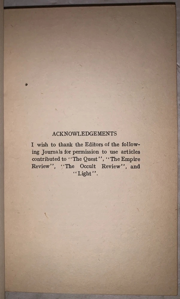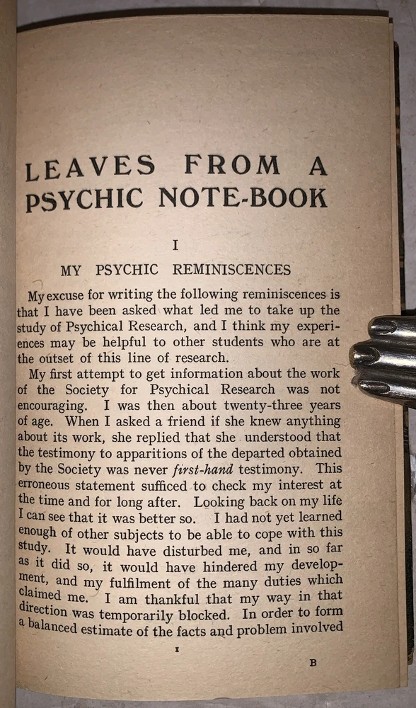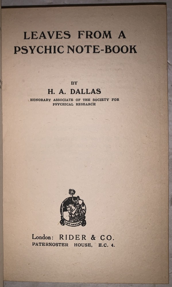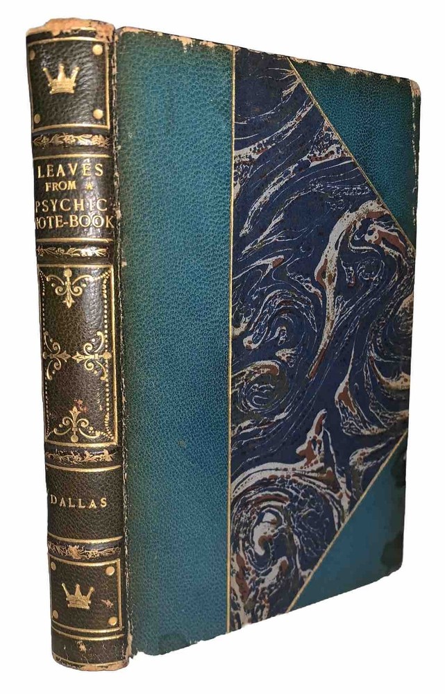 Leaves From A Psychic Note-Book by H. A. Dallas London: Rider & Co. ND, [1927] First Edition 12mo, 154 pages, bound in three quarter green leather over marbled boards. Spine with small raised bands, gilt lettering and decoration. Top edge gilt. Marbled endpapers. Some rubbing and wear, discoloration to spine, a cigar aroma, else in good + condition. If you have any questions, feel free to ask, and don't forget to check out my other listings.