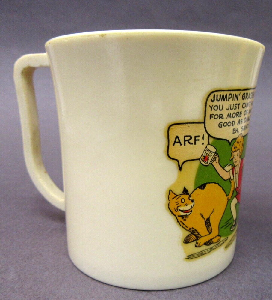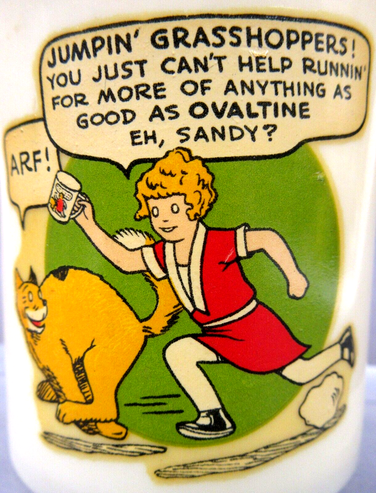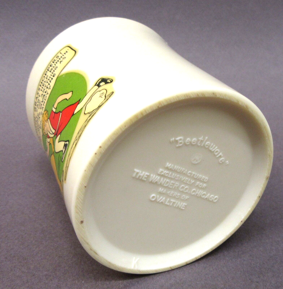 BID WITH CONFIDENCE We guarantee our merchandise. This is our 18th Year on Ebay, and we have sold well over 40,000 items! As with ALL of our auctions, this is the vintage, real McCoy. This is NOT a copy, NOT a modern day replica. Guaranteed authentic! 1930's LITTLE ORPHAN ANNIE Beetleware Ovaltine cup premium MINT High Grade condition LEAPIN' LIZARDS version with FULL figures of Annie and Sandy running mail-in premium from Ovaltine made by Beetleware for the Wander Co. creamy white approx. 3" tall overall decal is mint colors are strong please view all the photos to make an intelligent decision on condition. YES we do combine shipping. DO NOT MAKE payment until we send a combined invoice to save you $$ on the shipping fees. insurance is required on all fragile items and all shipments over $100.00. to get insurance and tracking for foreign orders we must ship the package PRIORITY AIR all orders over $250 value are shipped SIGNATURE CONFIRMATION PLEASE do not make payment until you receive the updated invoice from me we have many more thousands of items in stock. Please see our other EBAY listings this week. YES, we are happy to combine shipping on multiple wins. Yes, you can stop by the store and pick your winnings up in person. Google GASOLINE ALLEY ANTIQUES in Seattle Washington to learn more about us and to get our address and store hours. Please read the above description, and the following rules COMPLETELY. Thank you. YES, we do combine multiple wins! COMMENTS: NO RESERVE unless stated otherwise! Please do not bid, until you have read the SHIPPING charge, which is NOT negotiable. THANK YOU! We are HAPPY to ship to ANYWHERE in the World. We are not liable for shipping delays due to Customs or Foreign Postal Services. Please note: we are a licensed retailer in Washington State. All orders shipped to Washington State addresses will be charged the appropriate Sales Tax, unless a signed Resale Certificate form is supplied. If you do not agree with these terms, then please refrain from bidding. Your bids are always welcome! If you win multiple items, they can be combined to save on shipping. Questions email us. Who are we We invite you to Stop by & Visit. We have been full time MEMORABILIA DEALERS since 1974! We offer THOUSANDS of similar items for collectors around the world. See ALL our Great eBay auctions: Thank You and GOOD LUCK!