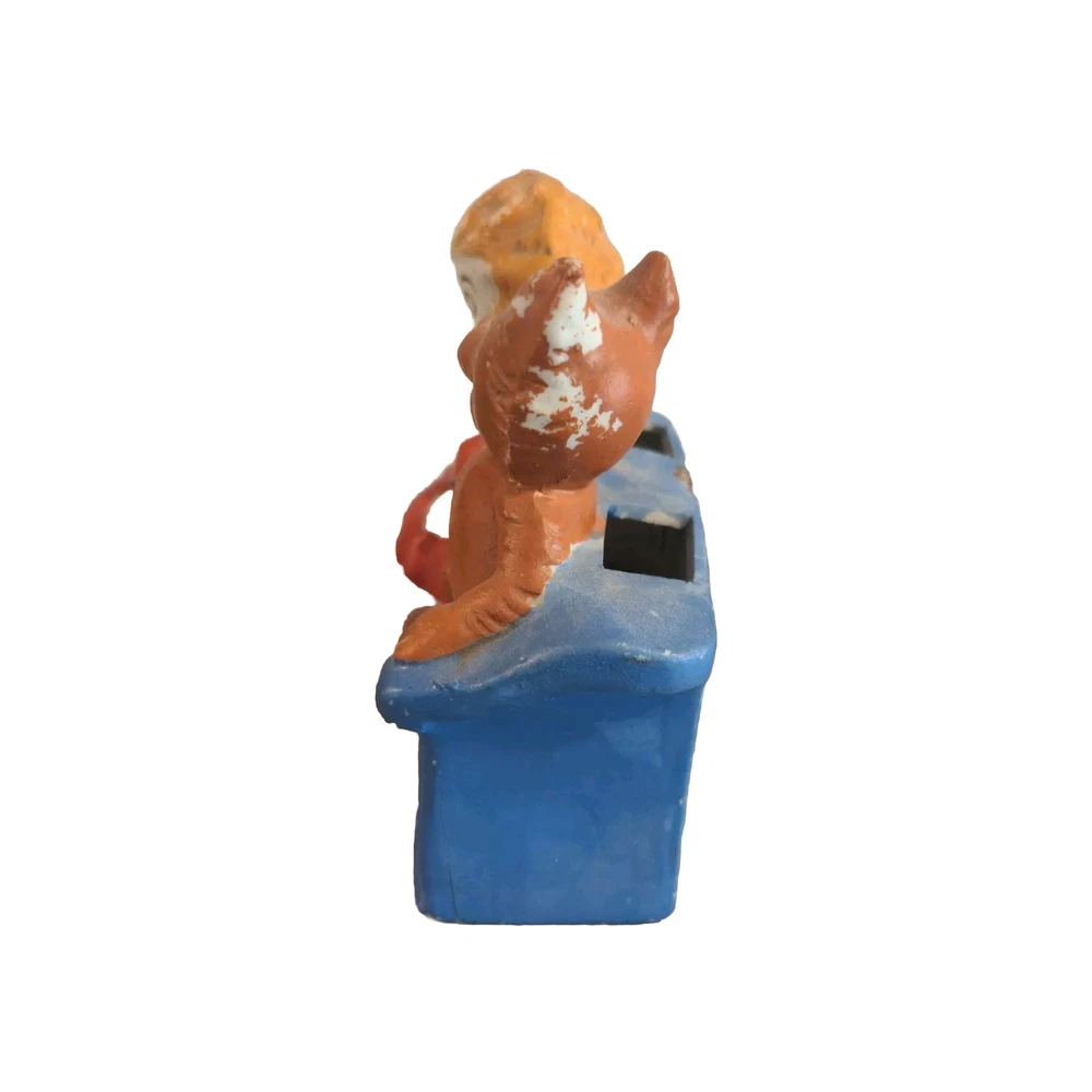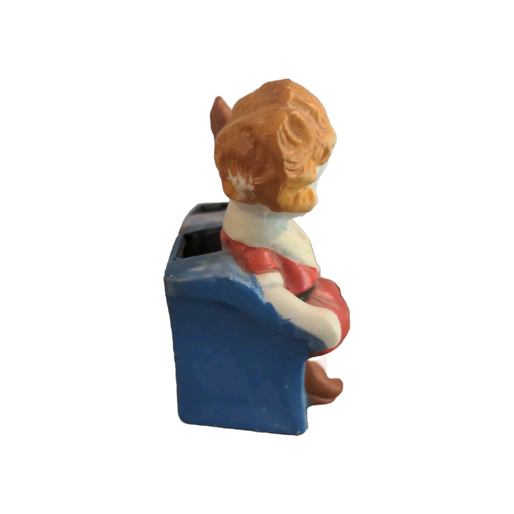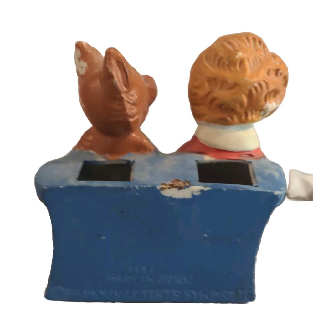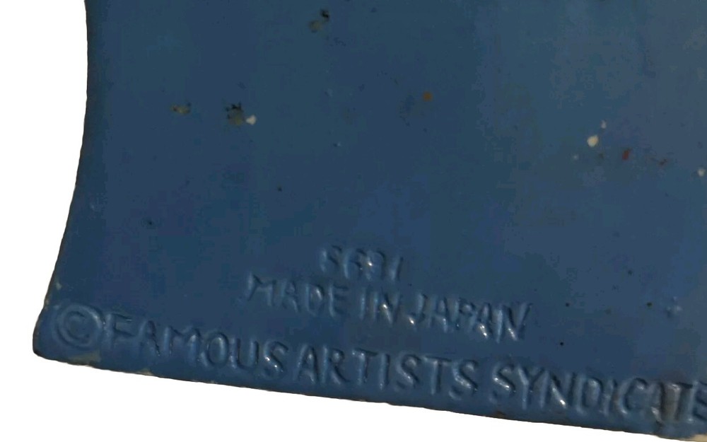 This vintage toothbrush holder features the beloved character Orphan Annie and her friend Sandy. Made in Japan in the 1930s, it is a rare find for collectors of vintage toys and porcelain. The holder is made by the Famous Artist Syndicate and bears the number 6681. The design is exquisite and the details are intricate, making it a perfect addition to any collection. This item is a must-have for fans of Orphan Annie and vintage toys. Don't miss the chance to own this unique piece of history. Great overall condition for its age if you need more details or pictures please feel free to contact us. ..….