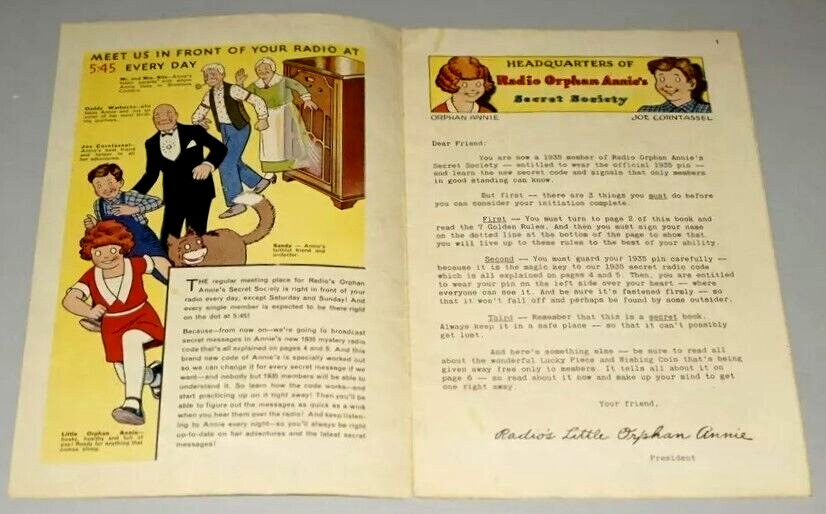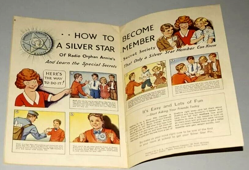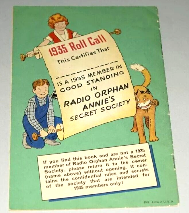 BID WITH CONFIDENCE We guarantee our merchandise. This is our 18th Year on Ebay, and we have sold well over 40,000 items! As with ALL of our auctions, this is the vintage, real McCoy. This is NOT a copy, NOT a modern day replica. Guaranteed authentic! 1935 Little Orphan Annie SECRET SOCIETY MANUAL Ovaltine radio premium mail in Ovaltine premium from the radio show used minimal age wear clean displays great please view all the photos to make an intelligent decision on condition. YES we do combine shipping. DO NOT MAKE payment until we send a combined invoice to save you $$ on the shipping fees. insurance is required on all fragile items and all shipments over $100.00 to get insurance and tracking for foreign orders we must ship the package PRIORITY AIR all orders over $250 value are shipped SIGNATURE CONFIRMATION PLEASE do not make payment until you receive the updated invoice from me we have many more thousands of items in stock. Please see our other EBAY listings this week. YES, we are happy to combine shipping on multiple wins. Yes, you can stop by the store and pick your winnings up in person. Google GASOLINE ALLEY ANTIQUES in Seattle Washington to learn more about us and to get our address and store hours. Please read the above description, and the following rules COMPLETELY. Thank you. YES, we do combine multiple wins! COMMENTS: NO RESERVE unless stated otherwise! Please do not bid, until you have read the SHIPPING charge, which is NOT negotiable. THANK YOU! We are HAPPY to ship to ANYWHERE in the World. We are not liable for shipping delays due to Customs or Foreign Postal Services. Please note: we are a licensed retailer in Washington State. All orders shipped to Washington State addresses will be charged the appropriate Sales Tax, unless a signed Resale Certificate form is supplied. If you do not agree with these terms, then please refrain from bidding. Your bids are always welcome! If you win multiple items, they can be combined to save on shipping. Questions email us. Who are we We invite you to Stop by & Visit. We have been full time MEMORABILIA DEALERS since 1974! We offer THOUSANDS of similar items for collectors around the world. See ALL our Great eBay auctions: Thank You and GOOD LUCK!
