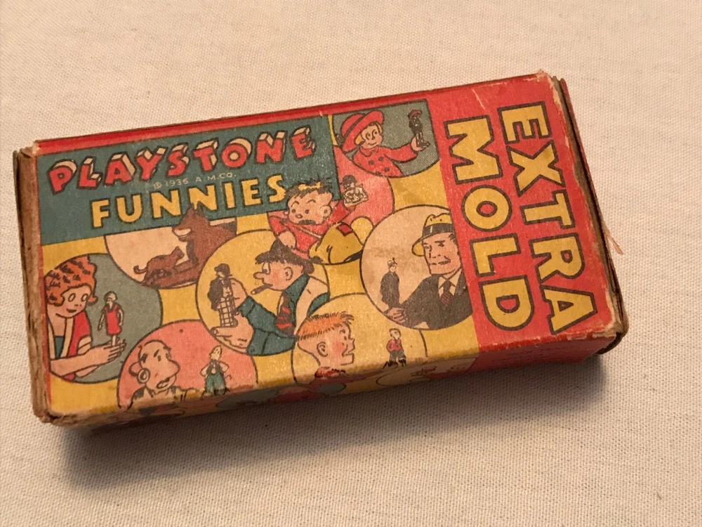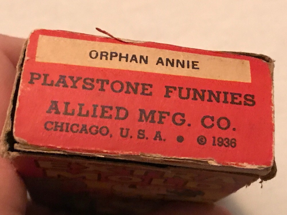 Box has wear and tapped on one end. 1936 Playstone Funnies Orphan Annie Extra Mold, Allied Mfg. Co.. Condition is Used. Shipped with USPS Priority Mail.