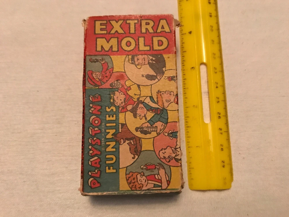 Box has wear and tapped on one end. 1936 Playstone Funnies Orphan Annie Extra Mold, Allied Mfg. Co.. Condition is Used. Shipped with USPS Priority Mail....