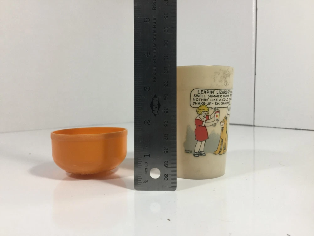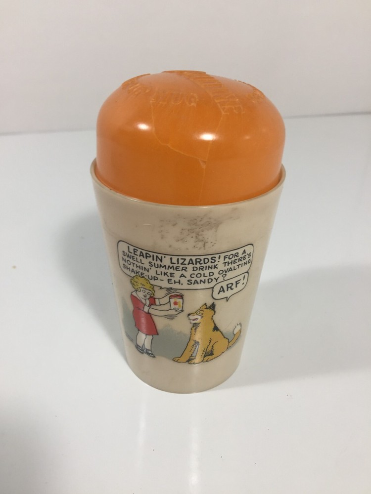 Absolutely love this vintage Ovaltine cup and cover! The Little Orphan Annie decal is in perfect condition, and the nostalgic charm is undeniable. A must-have for fans of classic comics or collectors of Americana—such a rare find in mint shape. Brings back childhood memories and looks fantastic on display!