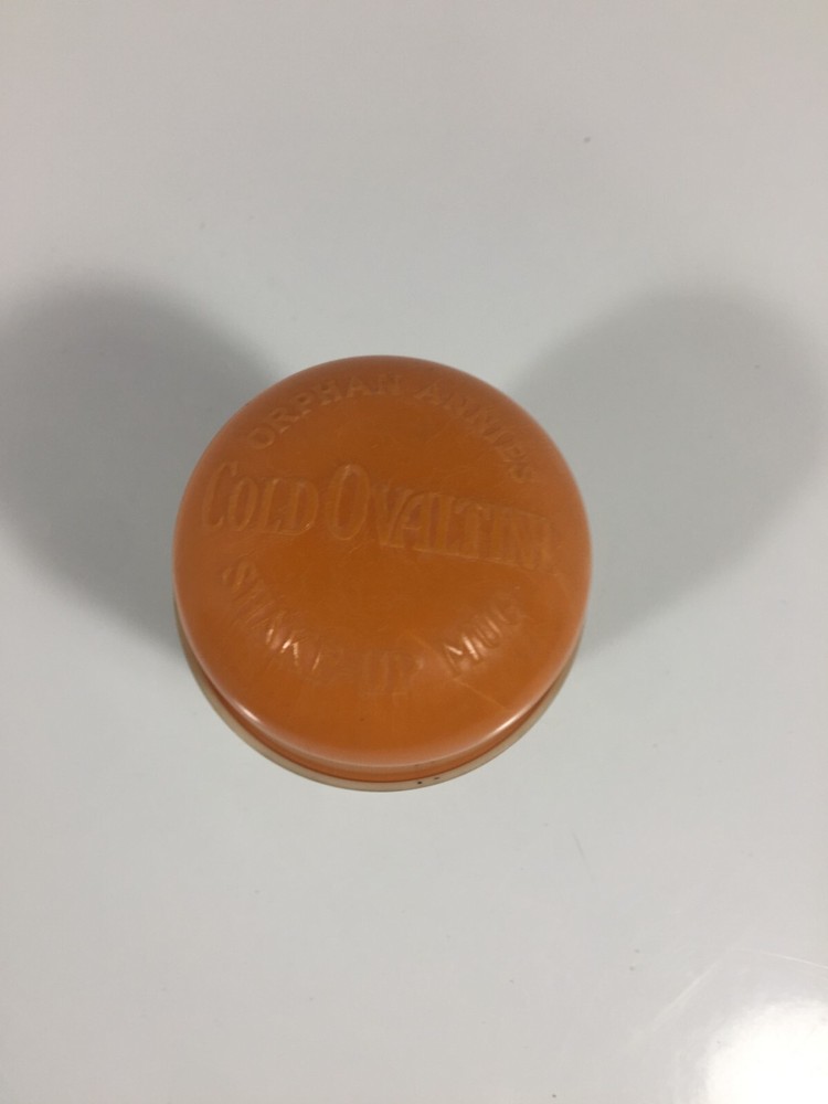 This vintage cup and cover feature the beloved character Little Orphan Annie and are adorned with a mint decal. Made in the United States in 1937, this piece is a charming addition to any collection of vintage and antique toys. The brand is Ovaltine, which adds to the historical significance of this item. Its character family is also Orphan Annie, making it a must-have for fans of the classic comic strip. This cup and cover are in excellent condition and are sure to delight any collector of vintage toys and memorabilia.