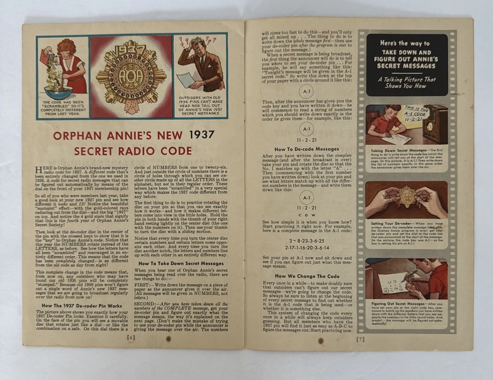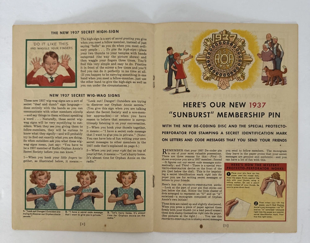 This is a rare and collectible manual for the 1937 Radio Orphan Annie Secret Society Club. It is a vintage item that was made in the United States and is perfect for fans of the iconic character. The ...