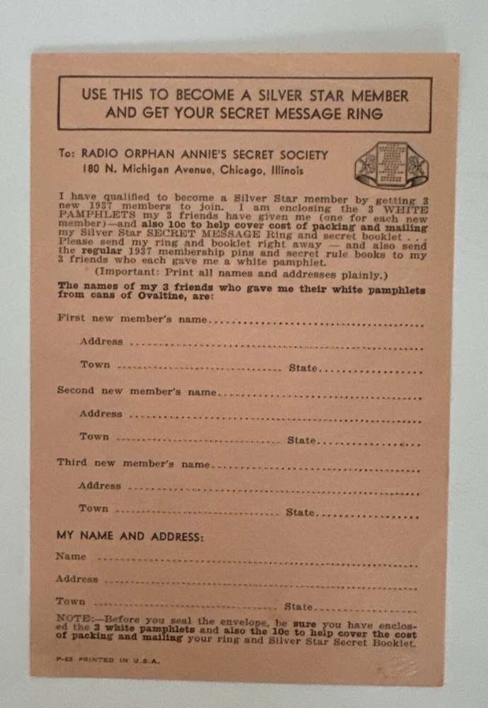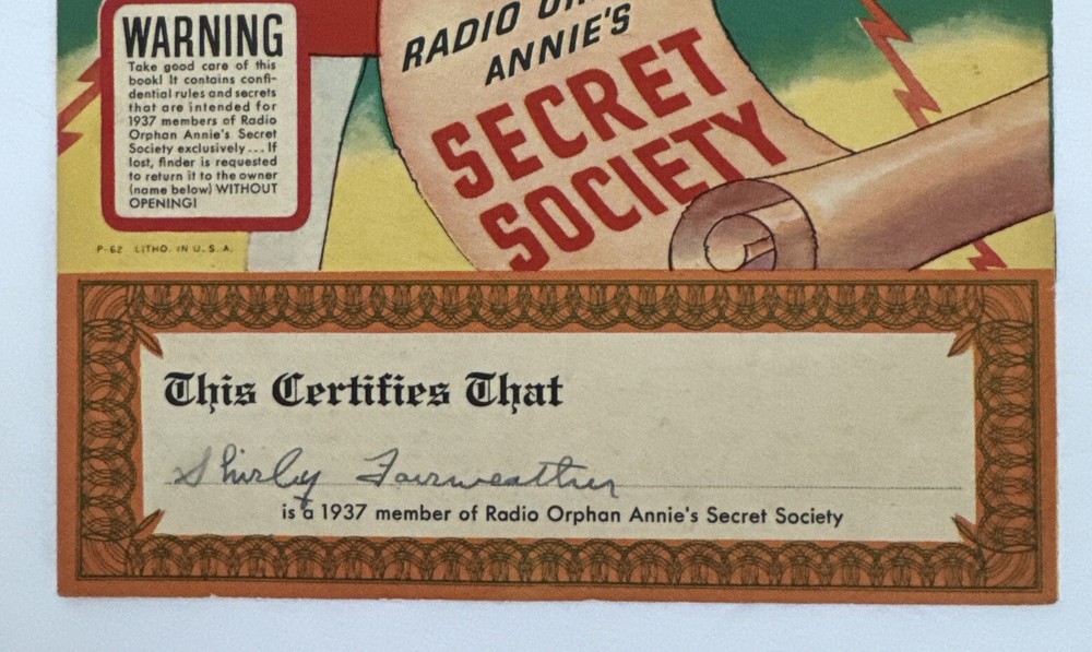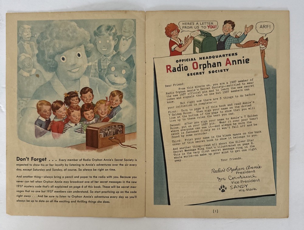 1937 Rare Radio Orphan Annie Secret Society Club Manual with Original Envelope