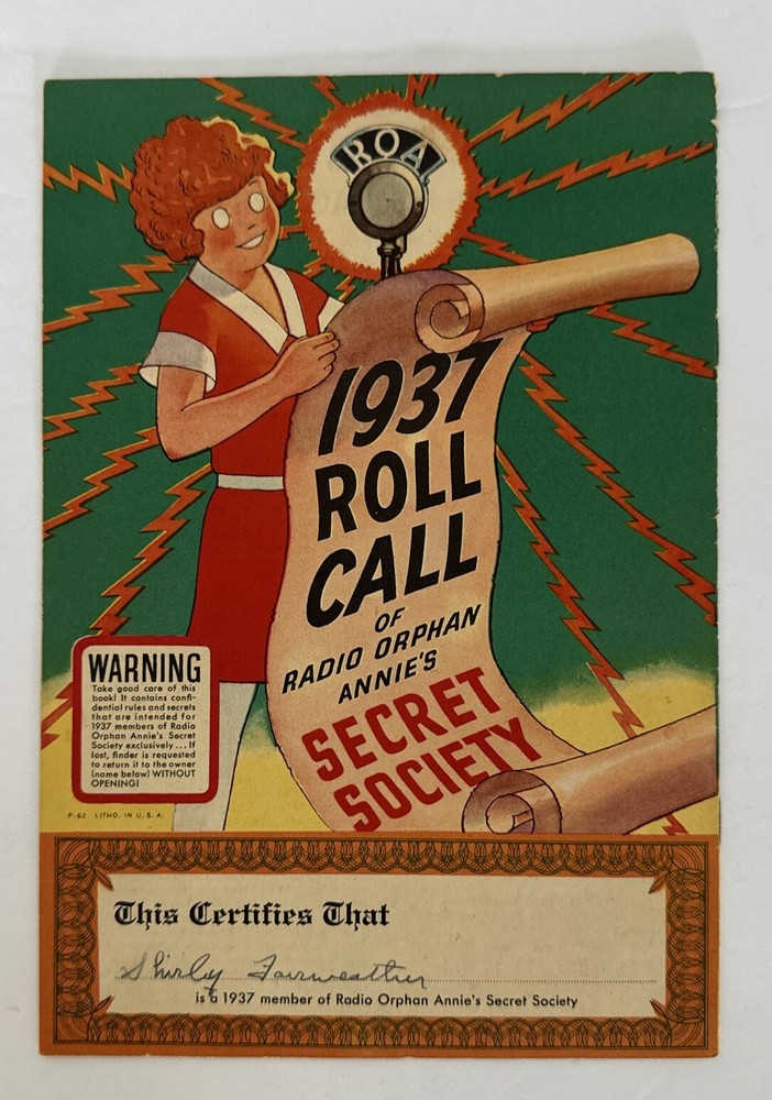 This is a rare and collectible manual for the 1937 Radio Orphan Annie Secret Society Club. It is a vintage item that was made in the United States and is perfect for fans of the iconic character. The manual is suitable for ages 12 and up, and contains valuable information about the society and its members. It is a must-have for any serious collector of vintage toys and accessories. Please see pictures of this highly collectible piece. Thanks for visiting !! Measurements: 9” x 6”
