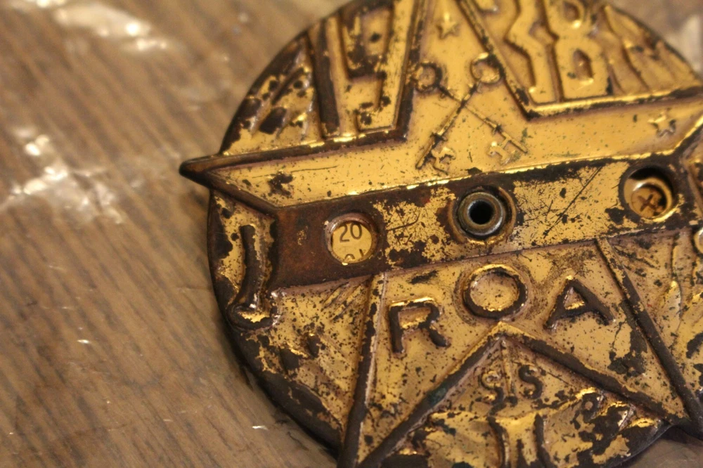 1938 (ROA) Orphan Annie Telematic Decoder Badge. The finish is partially worn off. The badge pin on the back is missing and not included in this sale. Otherwise the pin appears to be in good condition. Please check out all of the pictures before bidding/buying. The badge is being sold as is. No returns, no refunds.