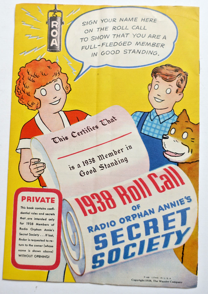 This Vintage 1938 Radio Orphan Annie's Secret Society OVALTINE Signs Signals Codes Book is a must-have for collectors of character toys. This was the 5th Anniversary Year. The book contains a unique code system that was used to communicate secret messages during the Depression era. The character, Annie, is known for her famously chosen to join the Secret Society, and this book is a rare find that provides a glimpse into the past. The book is in great shape and is a wonderful addition to any collection. The signs and signals codes are easy to decipher and provide a fun way to communicate. No writing or names! Please examine the photos for the best visual description of condition and ask questions if something is not clear.