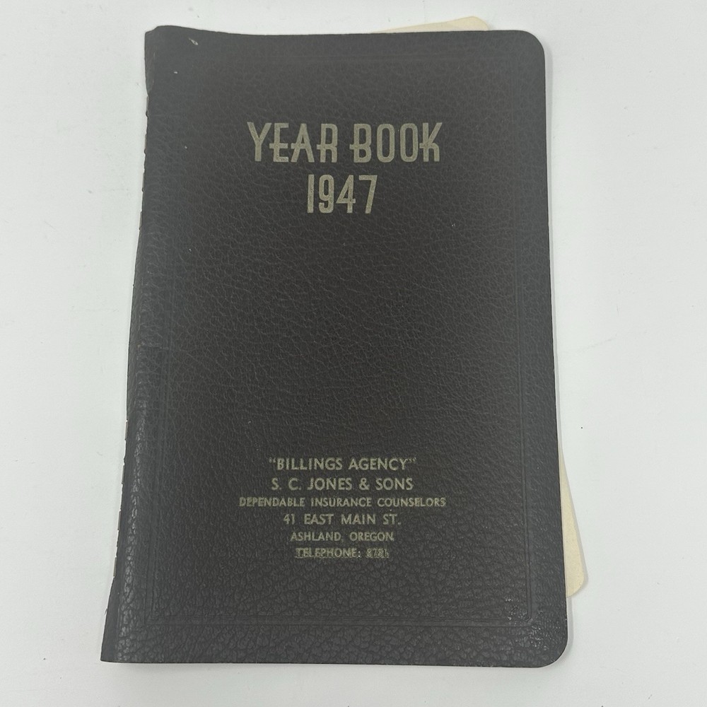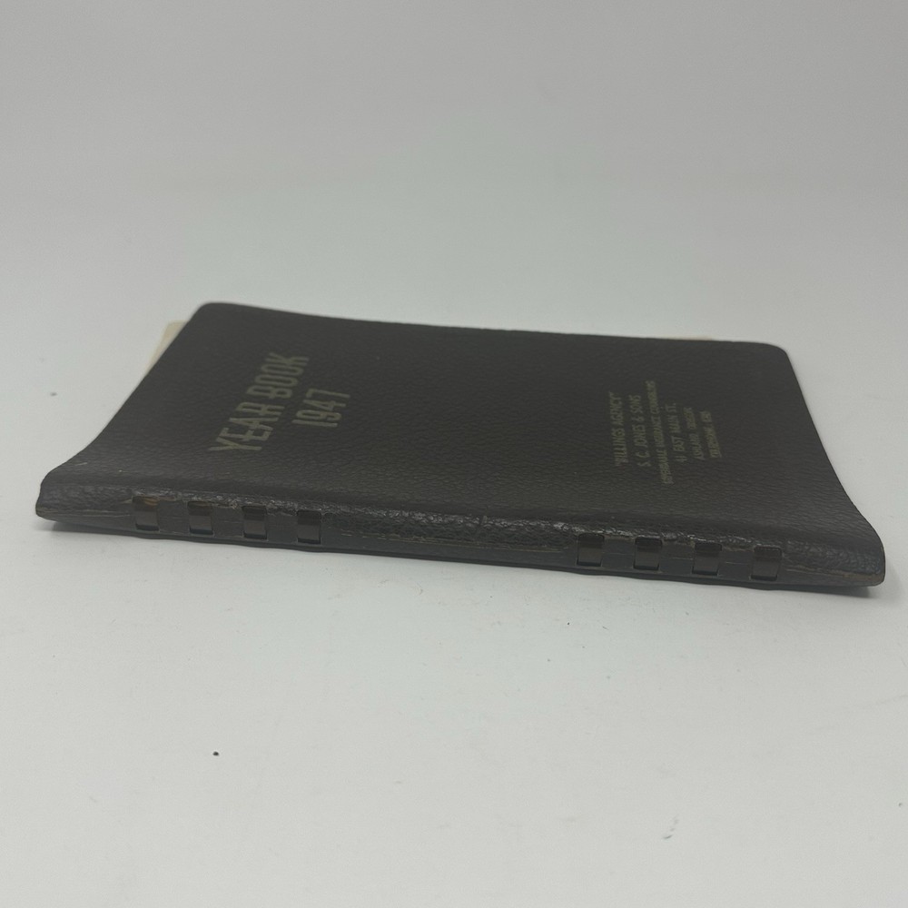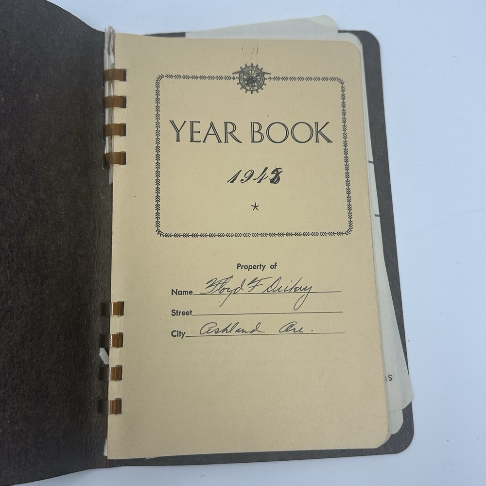 This yearbook is more of a yearly planner. Most of the inner sheets are missing and the remained pages have scratch notes with little notable content. A few pages are torn from the spiral binding. The leather cover is in very good condition with minimal wear and tear. The name of the owner appears to be "Floyd Dickey" but I am not sure. The book measures approximately 8.5 x 5.5 inches. Comes from a smoke-free home. Please review all photos as they are part of the description. If you have an issue with a purchase, please contact me as soon as possible so we can resolve the issue and make the best of an unfortunate situation. Please check my store for more awesome items.