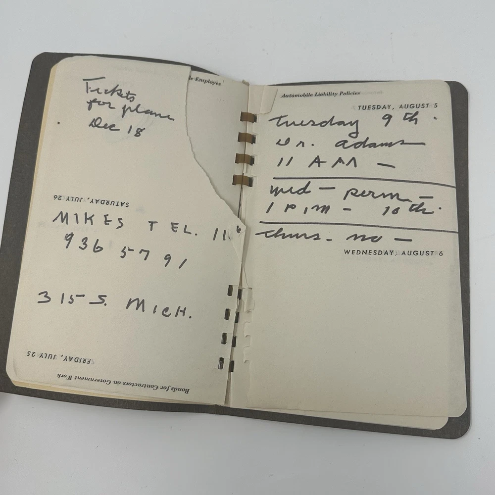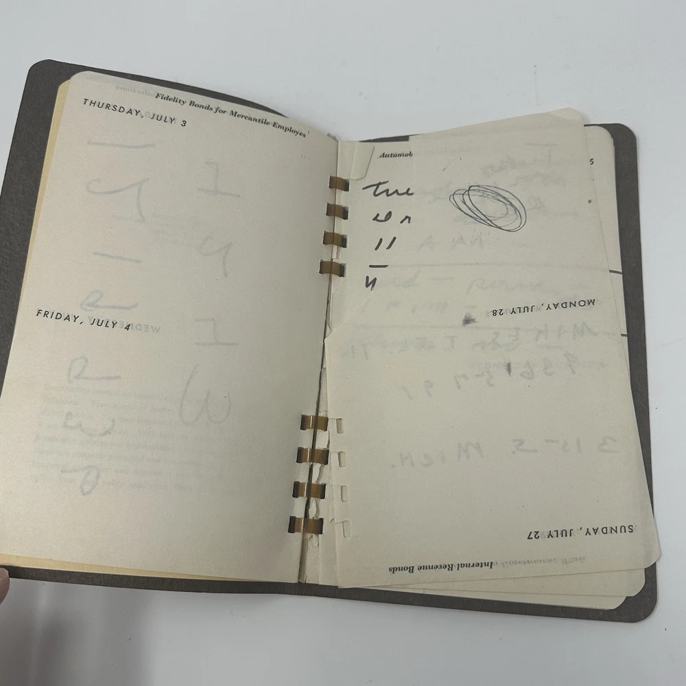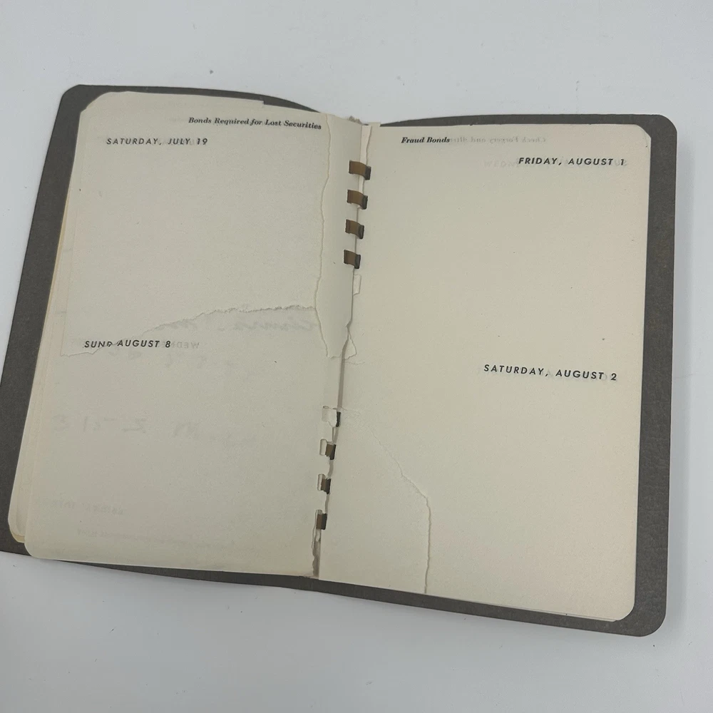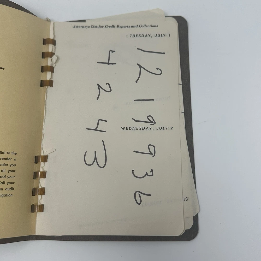 This yearbook is more of a yearly planner. Most of the inner sheets are missing and the remained pages have scratch notes with little notable content. A few pages are torn from the spiral binding. The leather cover is in very good condition with minimal wear and tear. The name of the owner appears to be "Floyd Dickey" but I am not sure. The book measures approximately 8.5 x 5.5 inches. Comes from a smoke-free home. Please review all photos as they are part of the description. If you have an issue with a purchase, please contact me as soon as possible so we can resolve the issue and make the best of an unfortunate situation. Please check my store for more awesome items.