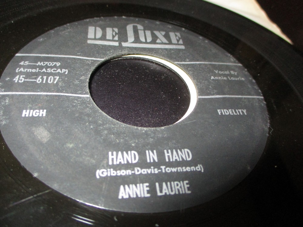 Original 1957 Annie Laurie- Hand In Hand b/w It Hurts Me To Be In Love US 7" on DeLuxe 6107. Record is VG- Minus w/some audible marks but no skips. Sleeve is generic. Buyer to pay $5 s&h in USA, $15 to Canada, $18 to Europe and S. America & $20 to Australia, Japan, Pacific Rim. Multiple purchase shipping discount if shipped at one time. Payment must be received w/in 3 days of auctions end.