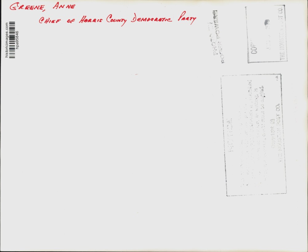 ebay template Note: Please study the images carefully to determine the condition of this vintage photograph, as it may not be in perfect condition. It may contain wrinkles, cracks, and possibly even tears due to its age and how it was handled before it got to us. A scanner may interpret colors and contrast differently than human eyes will, so it is possible that the actual photograph may be slightly darker or lighter in person. This vintage photograph is offered for sale as a collectible item and conveys no transfer of copyright. 1978 Press Photo Annie Greene, Harris County Democratic Party Chief - hpa95846 This is an original press photo. Anne Greene, chief of Harris County Democratic Party Photo is dated 1978. Photo measures 10 x 8.25 inches.. PHOTO FRONT PHOTO BACK Historic Images Part Number: hpa95846 Sell Smarter with Kyozou. Inventory and Ecommerce Management