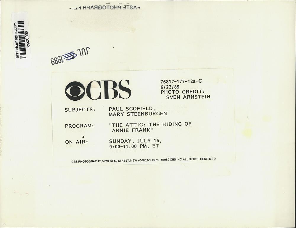 ebay template Note: Please study the images carefully to determine the condition of this vintage photograph, as it may not be in perfect condition. It may contain wrinkles, cracks, and possibly even tears due to its age and how it was handled before it got to us. A scanner may interpret colors and contrast differently than human eyes will, so it is possible that the actual photograph may be slightly darker or lighter in person. This vintage photograph is offered for sale as a collectible item and conveys no transfer of copyright. 1989 Press Photo Actor Mary Steenburgen in "The Attic The Hiding of Annie Frank" This is an original press photo. Paul Scofield, Mary Steenburgen, "The Attic: The Hiding of Annie Frank", Sunday, July 16.Photo measures 7 x 9.25inches. Photo is dated 06-23-1989. PHOTO FRONT PHOTO BACK Historic Images Part Number: syp20098 FAQs Q: Can I just download a digital version instead? A: No, we sell only vintage originals and do not make or distribute any copies, including digital ones. Q: Do you combine shipping and invoices? A: Multiple photos won on the same seller ID combine automatically through the eBay checkout process. If you encounter problems with this, send us a message via eBay messaging and we will send you an invoice. Due to eBay limitations, we cannot combine items won on our different seller IDs for a single shipping charge. Q: How quickly do you ship the items once paid? A: We ship within one business day after your payment clears. If you do not receive an "order shipped" email from us by the close of the second business day from submitting payment, please e-mail us via eBay messaging. Q: How do you make sure my photograph arrives safely? A: We package each order between two cross-corrugated pieces of cardboard to ensure that the package is as difficult to bend as possible. We then wrap each order in a plastic sheet to help protect against moisture. We want you to rest assured that we take every precaution to ensure that the photograph you receive will be in the same condition in your care as it was in ours. Q: Will the "Historic Images" watermark be on my photo when I receive it? A: No. This is a digital watermark we use to protect our images. It is not printed on the photo. Q: What are your office hours? A: eBay for us is a business, and a very fun one to be in! We are open M-F 9 to 5 (CST). Therefore, we do not return e-mails and phone calls over the weekend. We observe the following holidays: New Years Day, Memorial Day, Fourth of July, Labor Day, Thanksgiving and the day after Thanksgiving, Christmas Eve and Christmas Day. Q: Where did all these vintage photos come from? A: These original vintage photographs are from various news service and newspaper photo archives from locations around the country including: Boston, Detroit, Tampa, Chicago, Denver, Seattle, New Orleans, Milwaukee, Portland, Spokane, and more. We do not copy or reproduce any photographs -- every item is a unique vintage piece that was housed in a news archive. Q: Can I use this photograph in my book/blog/website? A: The short answer is no. There is no transfer of copyright for republication or reproduction with these photographs when you purchase them, and only photographs taken before 1923 are currently automatically in the public domain. Permission from the copyright holder, which usually can be identified from the back of each photo, must be sought to republish or reproduce the image for any purpose. Q: Do you relist items (in case I miss an auction ending)? A: Auction items that receive no bids are relisted in our store (historicimages-store on eBay) as a fixed-price item and at a higher price than the starting auction price. Q: Do you leave feedback? A: Yes, we always leave feedback for buyers. Our software monitors when our buyers leave us feedback, then notifies us that we can leave feedback for the buyer. Rest assured, if you leave feedback, we will do the same! Check out our family of eBay IDs: historicimages01 Sports Photos historicimages02 Entertainment Photos historicimages03 Americana Photos historicimages04 International & War Photos historicimages05 Transportation Photos historicimages-store Our largest fixed-price selection historicimages-market Hand-picked photos and our New Orleans collection historicimages-gallery Hand-picked photos Saturday night auctions About Us Historic Images was formed in September 2009, with a handful of scanners working out of a basement to digitize newspaper photo archives. We have since moved out of the basement, and we can now archive thousands of photos per day. Our company has worked with magazines and newspapers from Detroit, Boston, Denver, Seattle, Tampa, Chicago, and New Orleans, just to name a few. We are constantly adding to our inventory, and have assembled an archive of millions of photos to date. As our company evolved, we began our eBay business, which brings thousands of fresh auctions per week to the world's largest online auction marketplace. Our custom software systems and team of great employees allow us to efficiently scan and sell large photo archives online. At the very core of our company's DNA is a strong commitment to customer satisfaction and strict integrity for our product. Our promise to you is that we will do everything in our power to provide you a great buying experience. Copyright 2009 - Present, Historic Images, Inc. Sell Smarter with Kyozou. Inventory and Ecommerce Management