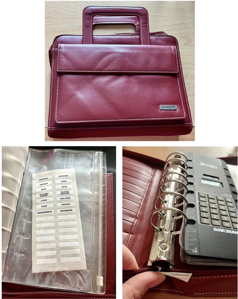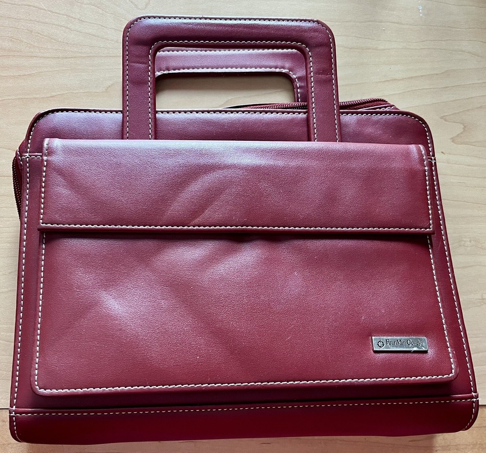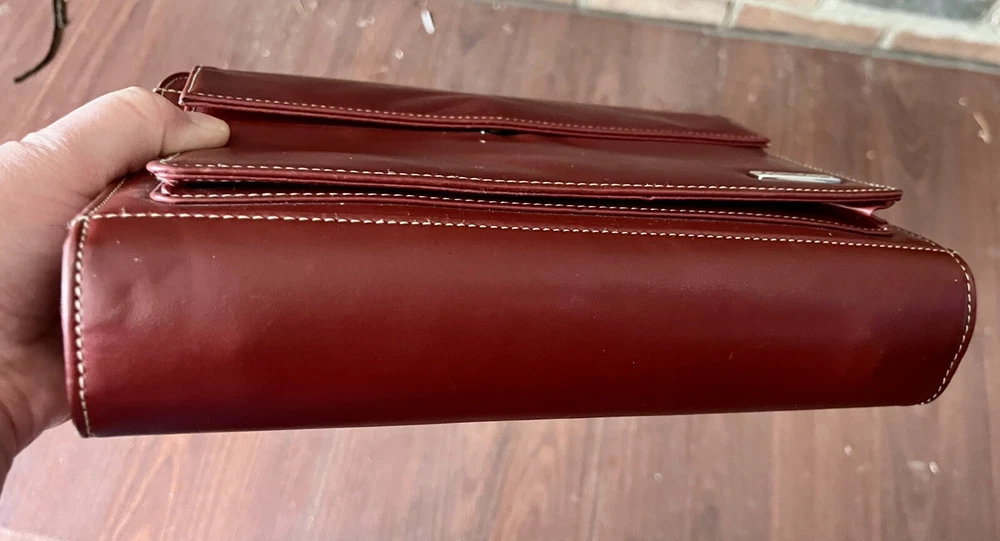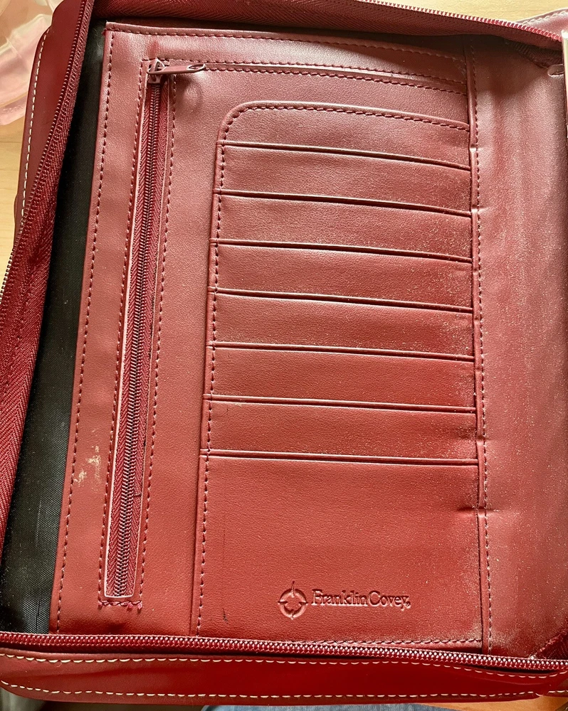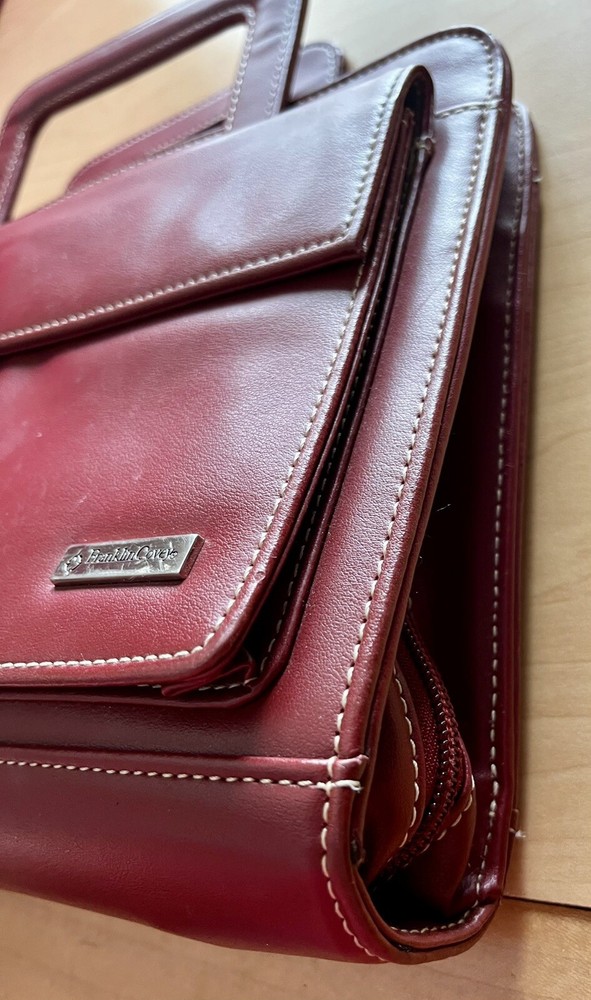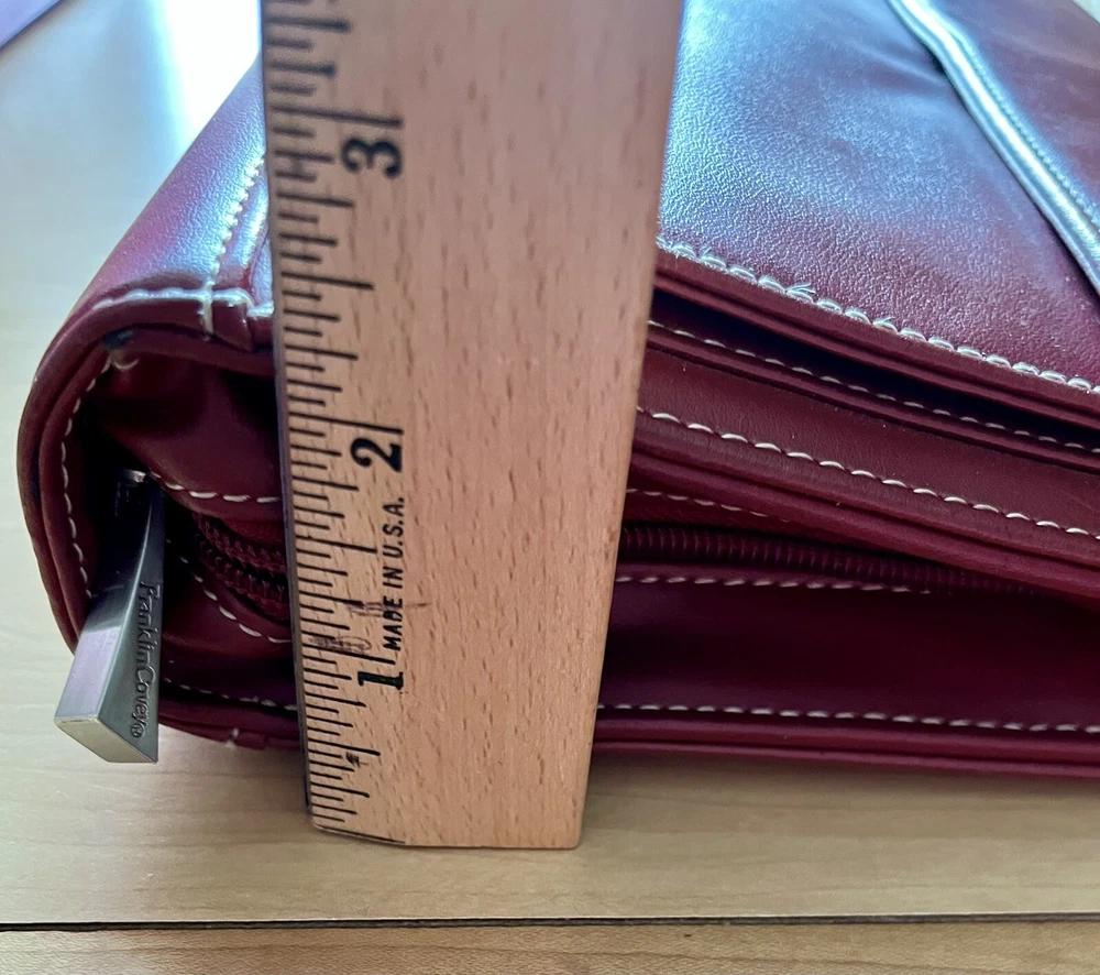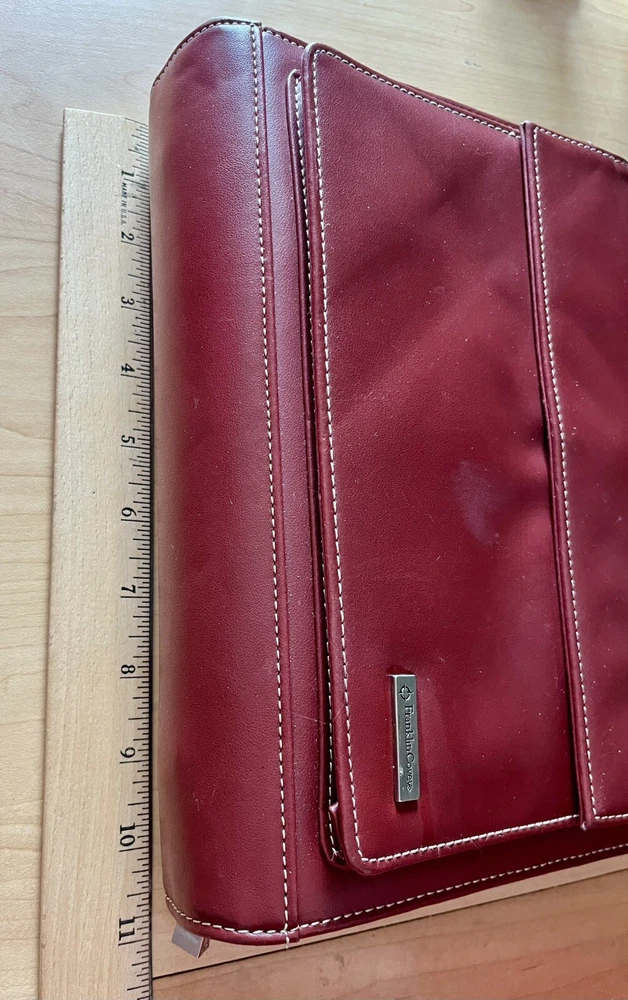 This vintage Franklin Covey planner is a fantastic find for anyone who loves classic organization! The red faux leather looks sleek, and the retractable handles make it super convenient to carry. The 7-ring binder system keeps everything secure, and the Monarch size fits standard inserts perfectly. Even though it's pre-owned, it's in great condition—just add your favorite refills, and you're ready to stay productive in style. Perfect for fans of retro planners!