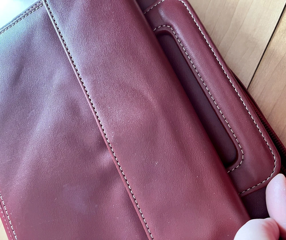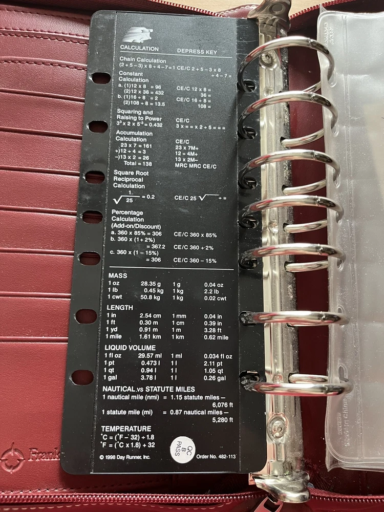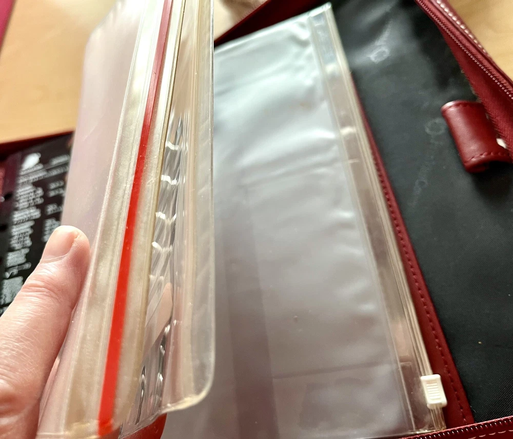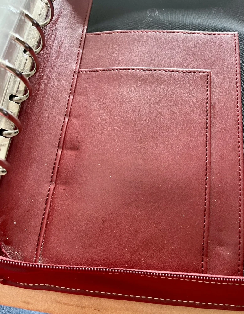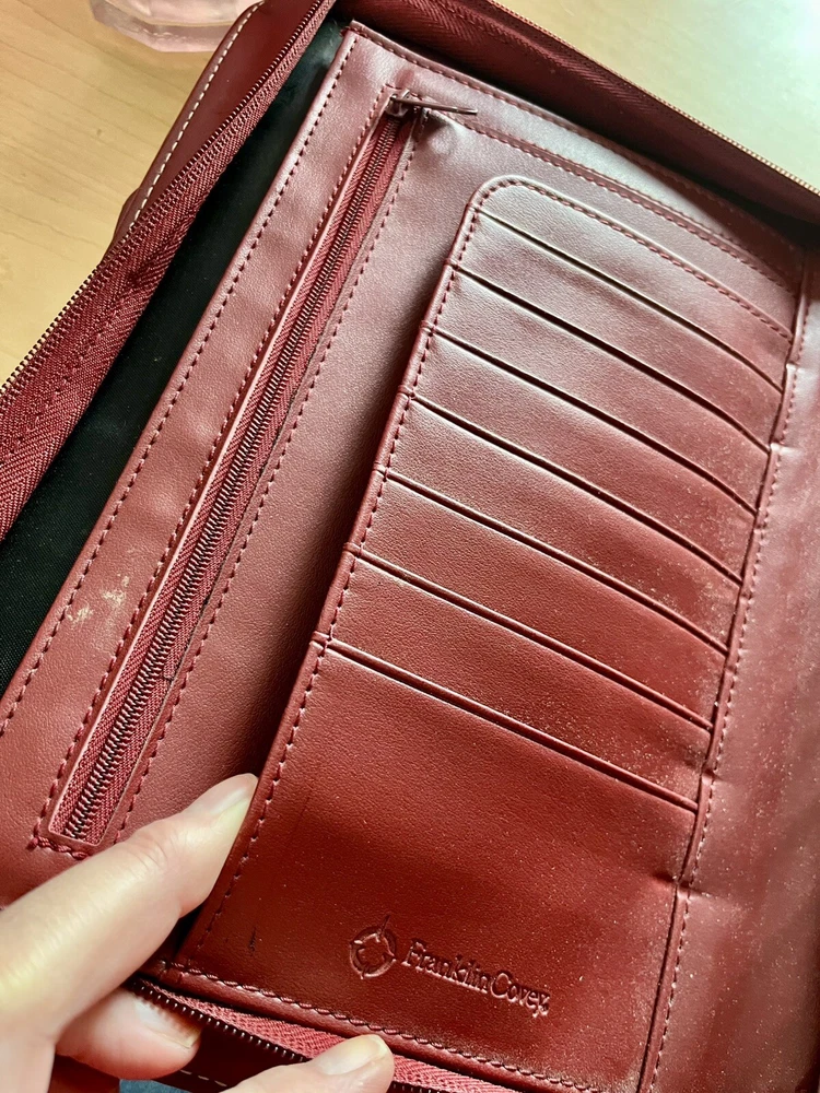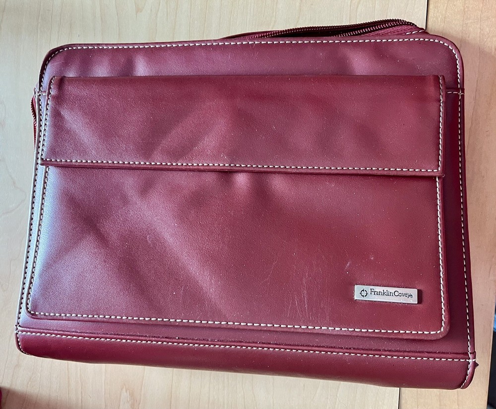 This vintage Franklin Covey planner is a fantastic find for anyone who loves classic organization! The red faux leather looks sleek, and the retractable handles make it super convenient to carry. The 7-ring binder system keeps everything secure, and the Monarch size fits standard inserts perfectly. Even though it's pre-owned, it's in great condition—just add your favorite refills, and you're ready to stay productive in style. Perfect for fans of retro planners!