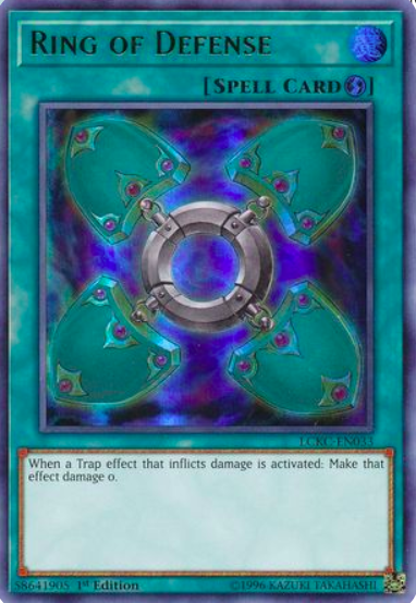 This NM Ring of Defense from LCKC-EN033 is an awesome Ultra Rare 1st Edition pull! The card arrived in perfect condition, just as described, and looks even better in person. Shipping took a bit longer due to customs, but it was worth the wait for such a rare collectible. The seller was upfront about potential delays, which I appreciate. Definitely a must-have for serious Yu-Gi-Oh! collectors—super happy with this purchase!