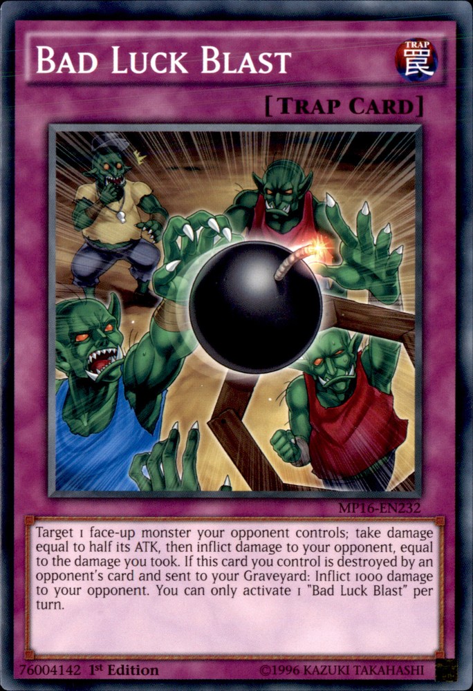 1st Edition Bad Luck Blast MP16-EN232 Yugioh Rare Trading Card