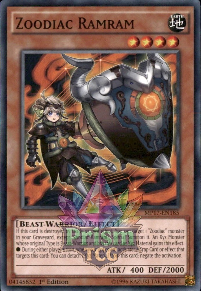 1st Edition Zoodiac Ramram MP17-EN185 Yugioh Rare Card