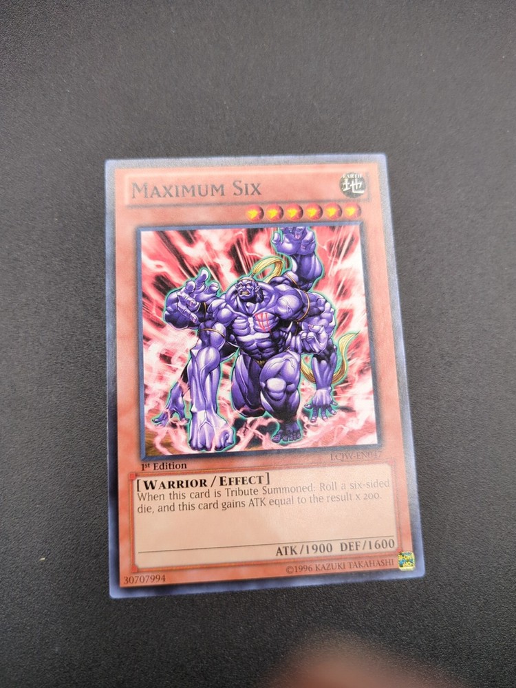 This YuGiOh card, with the card number LCJW-EN047, is a Common card from the Legendary Collection 4 (LC04/LCJW). The card name is Maximum Six and it features 1st Edition. This collectible card game individual card is a great addition to any YuGiOh card collection.