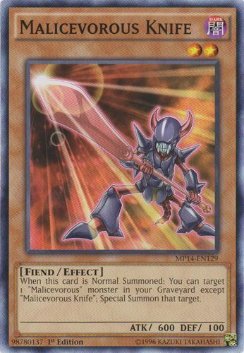 Card Name: Malicevorous Knife - MP14-EN129 - Common - 1st Edition Set: MP14 - 2014 Mega-Tin Mega Pack Quantity: 1 Edition: 1st Rarity: Common Condition: NM *** PLEASE READ *** Our Shipping Policy - Single Cards Only Domestic - USA Orders (Including Hawaii, Alaska, Puerto Rico & all US Territories) Pay one SHIPPING FEE regardless of how many single cards you buy. We combine multiple purchases. Please add items you wish to purchase to eBay's shopping cart and checkout & pay to get our combined shipping offer. ALL International Orders (Including Canada, Europe, Asia & Australia) Pay one FLAT SHIPPING FREE regardless of how many single cards you buy. We combine multiple purchases. Please add items you wish to purchase to eBay's shopping cart and checkout & pay to get our combined shipping offer. We reserve the right to refuse shipments to certain countries. Please contact us if you have any questions or concerns. Payment Information & Terms of Sale We accept PayPal, Visa, MasterCard, American Express and Discover Card. Payments are due within 3 days of purchase date! Sorry, no exceptions! Orders are shipped within 24 hours of payment. Orders placed & paid after 12noon PST on Fridays, weekends (Saturdays & Sundays), and Holidays are shipped the following business day. Orders are shipped with delivery confirmation within the Continental USA & select countries (Canada, Europe, Australia). We ship Worldwide!