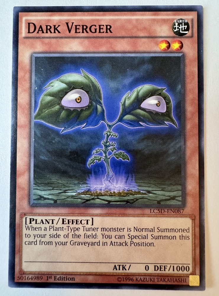 This Dark Verger card is a must-have for any YuGiOh collector looking to complete their set. With its common rarity and 1st edition status, it's a valuable addition to your collection. The card features the attribute of darkness and belongs to the Legendary Collection 5 (LC05/LC5D) set. The card number is LC5D-EN087 and it goes by the name of Dark Verger. It's a great card to have and perfect for anyone who wants to start playing YuGiOh. Don't miss out on the chance to add this card to your collection and get your hands on the complete set.