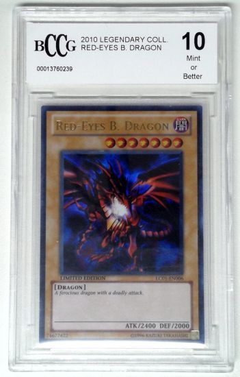 V0697: 2010: Red-Eyes B. Dragon: LC01-EN006: Limited Edition: Legendary Collection: BCCG: 10: Mint of Better: 00013760239 Graded Items Graded - Pokemon This listing is for x1 copies of the above product This listing is for 1x copy of “V0697: 2010: Red-Eyes B. Dragon: LC01-EN006: Limited Edition: Legendary Collection: BCCG: 10: Mint of Better: 00013760239”. This card has been professionally graded by BCCG to verify authenticity and Condition of the card. Card has been professionally sealed inside of a sealed plastic case by BCCG and has a unique identify code related to the authenticity held at BCCG directly. “V” number in title refers to an in-house identification system used to assure that you get the exact card pictured. Condition is as pictured and labeled. This card is not playable while sealed insided of the case.