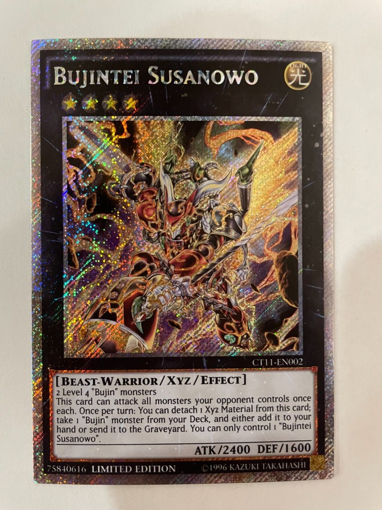 What you will receive: x1 Bujintei Susanowo - CT11-EN002 Please see photos for card condition; what you see is what you get. Card is Near Mint . How will it be shipped: Card will be shipped in a PWE. Card will be in a sleeve and toploader. Shipping via ebay standard envelope. Tracking included. Returns No returns are accepted. You will receive the same card in the photos.