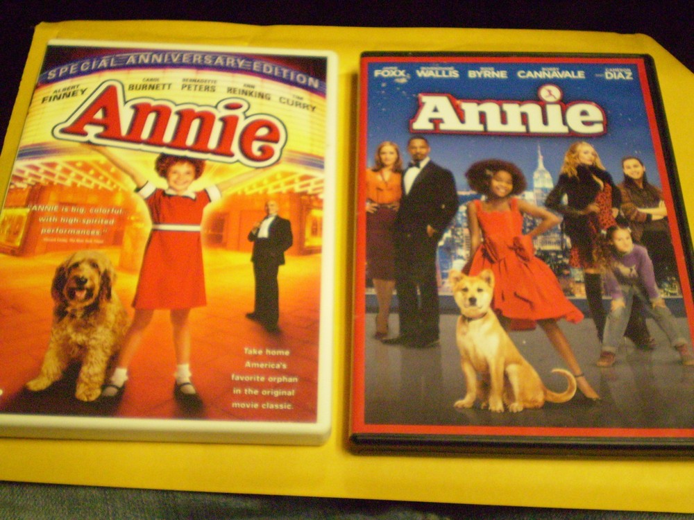 Both DVDs are in Excellent Condition................Includes: Annie (Carol Burnett, Albert Finney, Tim Curry) & Annie (Jamie Foxx, Cameron Diaz, Rose Byrne)............ A great way to get multiple DVDs of your favorite star, genre or series of movies at a low price and only pay one low S/H fee!!! Shipping for DVD lots is $3.90 with each additional item or lot $1.50.....items must be paid for on the same invoice to qualify for s/h discount. Please check out my other DVDs and items for sale (I have many Disney and other Childrens' DVDs currently listed) and save on combined s/h discounts!! I try my very best to ship items out within 2 business days so you receive your item quickly!!