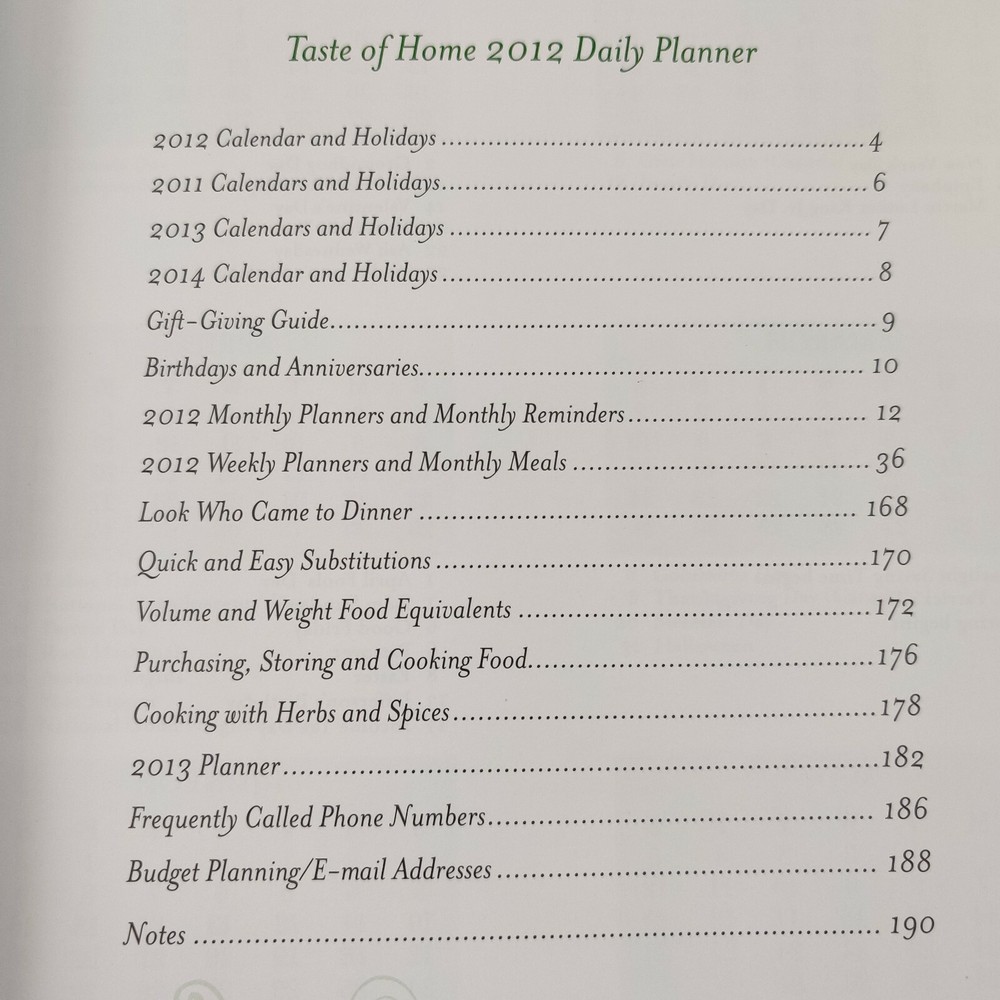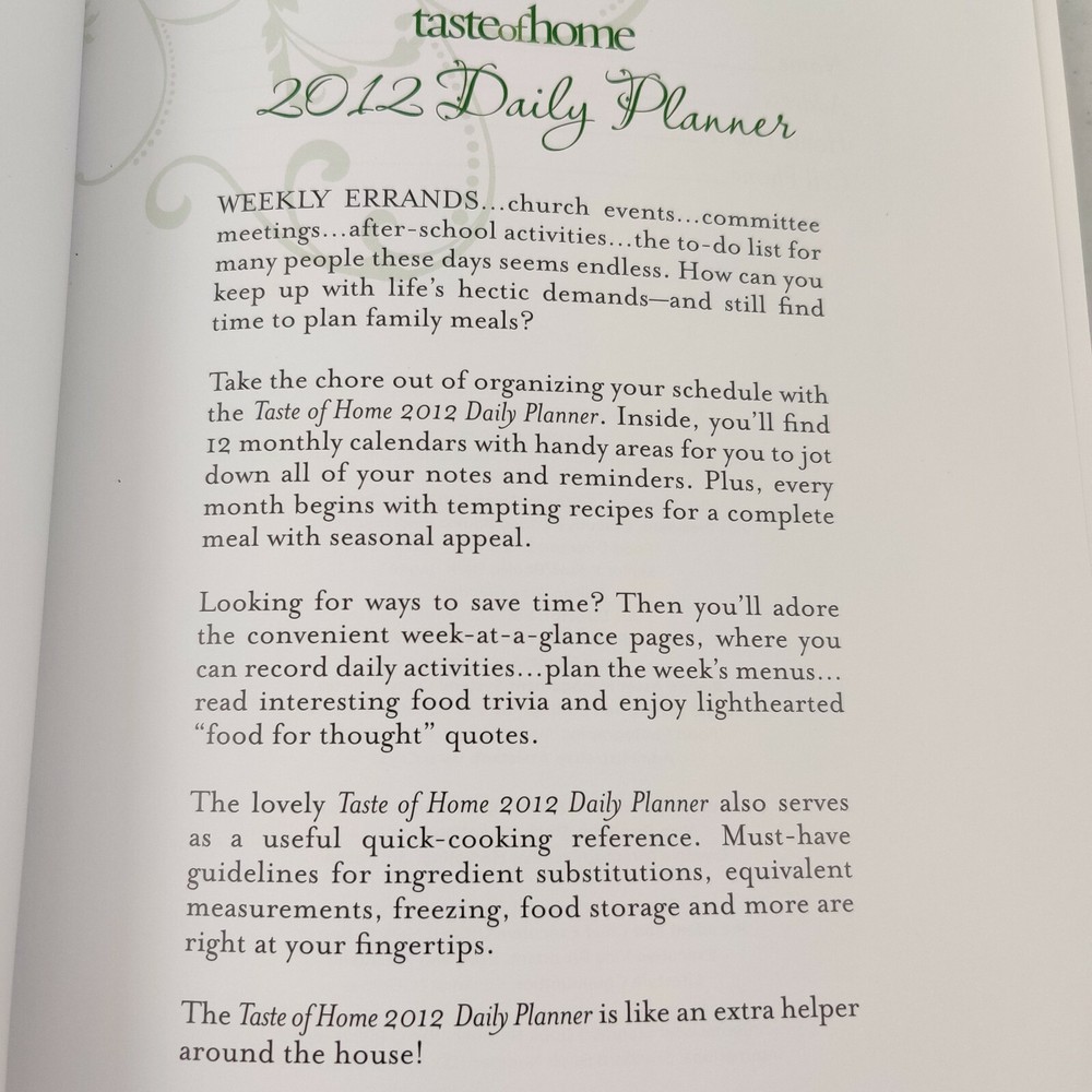 2 Taste of Home Annual Daily Planners by Reader's Digest 2011 and 2012 Menus planning,Recipes ,Reminders, calendar, gift guide, phone numbers, budget planning, substitution and so much more Pre-owned unused condition lots of uses even though it's based on old calendars Please see pictures for more details on items and condition