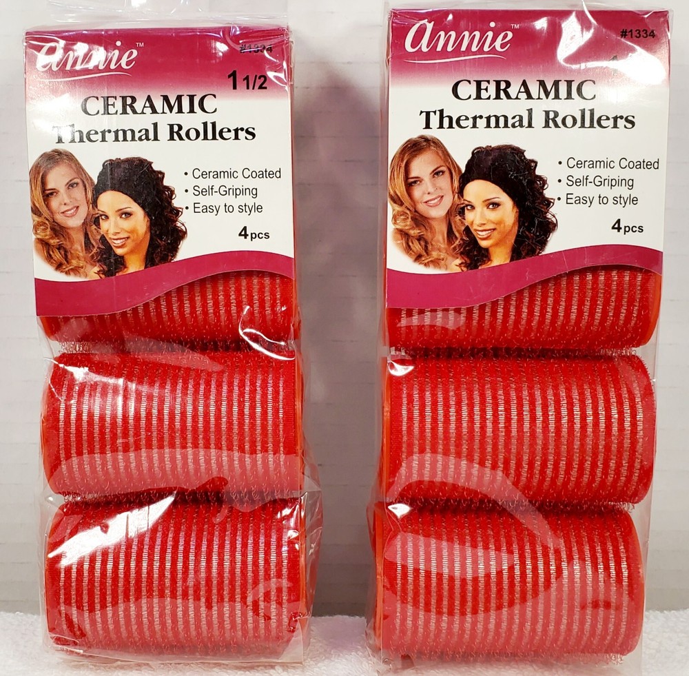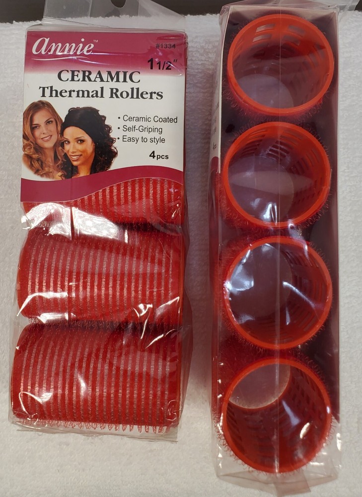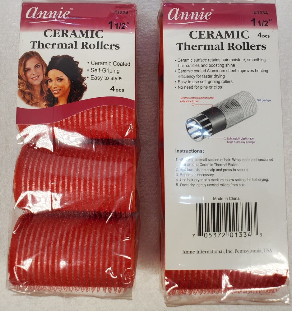 ANNIE CERAMIC THERMAL ROLLERS DIAMETER: 1 1/2" ITEM #1334 QTY: 4 PIECES PER PACK CERAMIC COATED : CERAMIC SURFACE RETAINS HAIR MOISTURE, SMOOTHING HAIR CUTICLES AND BOOSTING SHINE SELF GRIPPING : EASY TO USE SELF GRIPPING ROLLERS. NO NEED FOR PINS OR CLIPS. EASY TO STYLE : CERAMIC COATED ALUMINUM SHEET IMPROVES HEATING EFFICIENCY FOR FASTER DRYING On Jul-16-11 at 13:04:48 PDT, seller added the following information: Track Page Views With Auctiva's FREE Counter