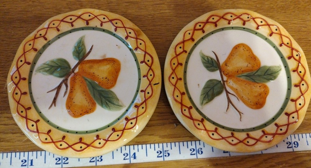 2 X MWW Market Mini Plate FRUIT TART Pear Rare Home Decor Annie Danielson 4.5”.