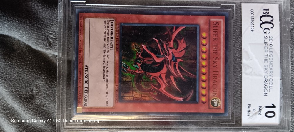 This Slifer The Sky Dragon card is absolutely stunning—the ultra-rare foil finish makes it pop, and the condition is flawless. As a BCCG 10 Mint, it's a rare gem that any Yu-Gi-Oh! collector would be thrilled to own. The divine-beast artwork is breathtaking, and the quality feels premium. A true centerpiece for any deck or display!