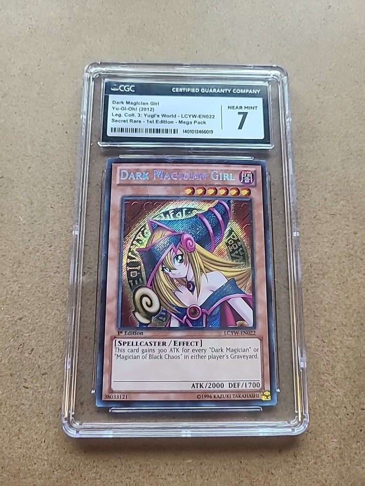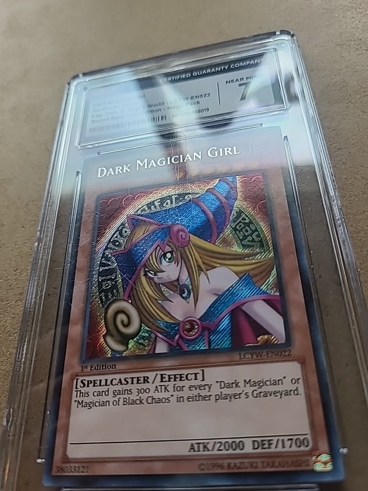 This 2012 Yu-Gi-Oh! LCYW-EN022 Dark Magician Girl 1st Edition-GCG 7 NM-MINT-Secret card is a must-have for any collector or fan of the game. With a rare Secret Rare rarity and a stunning Holo finish, this card features Yami Yugi and Yugi Muto and is a part of the Legendary Collection 3: Mega Pack set. The card is made of high-quality card stock material and has a card size of Japanese. It has 1700 defense/toughness and 2000 attack/power, making it a powerful addition to any deck. The card is in English language and was manufactured by Konami. It is an Effect card type with a Spellcaster creature/monster type, and its card number is LCYW-EN022. The card features illustrations by Kazuki Takahashi and is vintage, with a population of only 74. This card is a chase, making it an even more valuable addition to any collection.