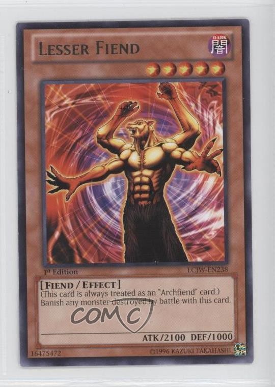 2013 Yu-Gi-Oh! Legendary Collection 4: Joey's World - Mega-Pack [Base] - 1st Edition #LCJW-EN238 Lesser Fiend COMC Item: 16509701 - YuGiOh Card - Featuring Lesser Fiend Search for more: 2013 Yu-Gi-Oh! Legendary Collection 4: Joey's World Search for more: 2013 Yu-Gi-Oh! Legendary Collection 4: Joey's World - Mega-Pack [Base] - 1st Edition View all of our Listings Auctions Buy It Now About Us Located in the beautiful Pacific Northwest, COMC (Check Out My Cards) is the world's largest consignment service for trading card singles. More than 10,000 people have used our consignment service to list over 50 million trading cards. Find out how we can help you consign your items on eBay by contacting us through eBay messaging. COMC -- "The Safe & Easy Way to Buy & Sell" Raw Condition for Modern Cards Unless otherwise noted, raw modern cards are listed in Near Mint-Mint condition or better. A NM-MT card appears to be Mint at first glance, but upon closer inspection, may exhibit some of the following: minor print defects (e.g. roller marks, print line, dimple), minor scratches, slight edge wear, and slight corner wear. Centering is clearly visible in the images provided and does not factor into our condition assessment. Raw Condition for Vintage Cards Unless otherwise noted, raw vintage cards are listed in Excellent condition or better. An EX card may exhibit some of the following: minor rounding of corners, surface wear, print defects, light scratches, and slight edge wear/chipping. Centering is clearly visible in the images provided and does not factor into our condition assessment. Domestic Shipping Combined shipping for multiple items is available. To receive combined shipping, please ensure all desired items are in your eBay shopping cart before proceeding to checkout. eBay limits orders to 40 items per order. We automatically combine multiple orders placed on the same day. If you place multiple orders on the same day, please contact us to request a refund of applicable shipping costs. Signature confirmation may be required on invoices over $400. All cards are protected and shipped securely. International Shipping COMC offers eBay's International Shipping (EIS) for international orders under $2,500* (see country exceptions below). All duties and import fees are paid at checkout; in the rare event that there are additional import fees upon delivery, these are borne by the buyer. EIS packages route through a shipping hub in Erlanger, KY before shipping to their final destination. Please note that EIS does not allow for combined shipments. The shipping rates are determined by eBay and cannot be adjusted. *Maximum sale price exceptions: Colombia, Kuwait ($2,000); Taiwan ($1,539); Chile, Costa Rica, Guatemala, Honduras, Trinidad and Tobago ($1,000); Antigua and Barbuda, Aruba, Belize, Dominica, Grenada, Philippines, Saint Kitts and Nevis, Saint Lucia, Montserrat, Turks and Caicos Islands ($500); Dominican Republic, El Salvador ($200). Please request a shipping quote through eBay messaging for orders that exceed the maximum sale price supported by eBay's International Shipping. You will be responsible for all duties and import fees for international orders shipped outside the EIS. All cards are protected and shipped securely. Payment COMC does not accept offers on our cards through our eBay storefront. COMC utilizes eBay’s managed payments system. If you are experiencing difficulties making a payment, please contact eBay for assistance. Return Policy Returns are only accepted on the rare occasion the item is not as described. If you are making a return, please initiate the return process through eBay so a mailing label can be provided for you. Prior to listing, our expert team carefully assessed this item to represent it accurately. Please review the description and high-definition images prior to purchasing to ensure this item meets your satisfaction. We welcome you to contact us if you have further questions about this item. Trust and Integrity COMC carefully assesses each item consigned to us to prevent fraudulent items from entering the marketplace. If you believe an item offered on COMC may be fraudulent, please contact us with details so we can investigate the issue. Items we determine are outside our supported items policy may be removed. Last Modified: 6/22/2025 7:32:31 AM PDT