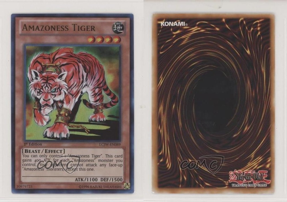 2013 Yu-Gi-Oh! Legendary Collection 4: Joey's World - Mega-Pack [Base] - 1st Edition #LCJW-EN089 Amazoness Tiger COMC Item: 62338081 - YuGiOh Card - Featuring Amazoness Tiger Search for more: 2013 Yu-Gi-Oh! Legendary Collection 4: Joey's World Search for more: 2013 Yu-Gi-Oh! Legendary Collection 4: Joey's World - Mega-Pack [Base] - 1st Edition View all of our Listings Auctions Buy It Now About Us Located in the beautiful Pacific Northwest, COMC (Check Out My Cards) is the world's largest consignment service for trading card singles. More than 10,000 people have used our consignment service to list over 50 million trading cards. Find out how we can help you consign your items on eBay by contacting us through eBay messaging. COMC -- "The Safe & Easy Way to Buy & Sell" Raw Condition for Modern Cards Unless otherwise noted, raw modern cards are listed in Near Mint-Mint condition or better. A NM-MT card appears to be Mint at first glance, but upon closer inspection, may exhibit some of the following: minor print defects (e.g. roller marks, print line, dimple), minor scratches, slight edge wear, and slight corner wear. Centering is clearly visible in the images provided and does not factor into our condition assessment. Raw Condition for Vintage Cards Unless otherwise noted, raw vintage cards are listed in Excellent condition or better. An EX card may exhibit some of the following: minor rounding of corners, surface wear, print defects, light scratches, and slight edge wear/chipping. Centering is clearly visible in the images provided and does not factor into our condition assessment. Domestic Shipping Combined shipping for multiple items is available. To receive combined shipping, please ensure all desired items are in your eBay shopping cart before proceeding to checkout. eBay limits orders to 40 items per order. We automatically combine multiple orders placed on the same day. If you place multiple orders on the same day, please contact us to request a refund of applicable shipping costs. Signature confirmation may be required on invoices over $400. All cards are protected and shipped securely. International Shipping COMC offers eBay's International Shipping (EIS) for international orders under $2,500* (see country exceptions below). All duties and import fees are paid at checkout; in the rare event that there are additional import fees upon delivery, these are borne by the buyer. EIS packages route through a shipping hub in Erlanger, KY before shipping to their final destination. Please note that EIS does not allow for combined shipments. The shipping rates are determined by eBay and cannot be adjusted. *Maximum sale price exceptions: Colombia, Kuwait ($2,000); Taiwan ($1,539); Chile, Costa Rica, Guatemala, Honduras, Trinidad and Tobago ($1,000); Antigua and Barbuda, Aruba, Belize, Dominica, Grenada, Philippines, Saint Kitts and Nevis, Saint Lucia, Montserrat, Turks and Caicos Islands ($500); Dominican Republic, El Salvador ($200). Please request a shipping quote through eBay messaging for orders that exceed the maximum sale price supported by eBay's International Shipping. You will be responsible for all duties and import fees for international orders shipped outside the EIS. All cards are protected and shipped securely. Payment COMC does not accept offers on our cards through our eBay storefront. COMC utilizes eBay’s managed payments system. If you are experiencing difficulties making a payment, please contact eBay for assistance. Return Policy Returns are only accepted on the rare occasion the item is not as described. If you are making a return, please initiate the return process through eBay so a mailing label can be provided for you. Prior to listing, our expert team carefully assessed this item to represent it accurately. Please review the description and high-definition images prior to purchasing to ensure this item meets your satisfaction. We welcome you to contact us if you have further questions about this item. Trust and Integrity COMC carefully assesses each item consigned to us to prevent fraudulent items from entering the marketplace. If you believe an item offered on COMC may be fraudulent, please contact us with details so we can investigate the issue. Items we determine are outside our supported items policy may be removed. Last Modified: 6/22/2025 7:32:40 AM PDT