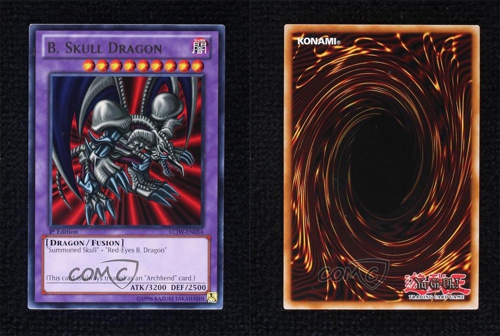 2013 Yu-Gi-Oh! Legendary Collection 4: Joey's World - Mega-Pack [Base] - 1st Edition #LCJW-EN054 Black Skull Dragon COMC Item: 190993226 - YuGiOh Card - Featuring Black Skull Dragon Search for more: 2013 Yu-Gi-Oh! Legendary Collection 4: Joey's World Search for more: 2013 Yu-Gi-Oh! Legendary Collection 4: Joey's World - Mega-Pack [Base] - 1st Edition View all of our Listings Auctions Buy It Now About Us Located in the beautiful Pacific Northwest, COMC (Check Out My Cards) is the world's largest consignment service for trading card singles. More than 10,000 people have used our consignment service to list over 50 million trading cards. Find out how we can help you consign your items on eBay by contacting us through eBay messaging. COMC -- "The Safe & Easy Way to Buy & Sell" Raw Condition for Modern Cards Unless otherwise noted, raw modern cards are listed in Near Mint-Mint condition or better. A NM-MT card appears to be Mint at first glance, but upon closer inspection, may exhibit some of the following: minor print defects (e.g. roller marks, print line, dimple), minor scratches, slight edge wear, and slight corner wear. Centering is clearly visible in the images provided and does not factor into our condition assessment. Raw Condition for Vintage Cards Unless otherwise noted, raw vintage cards are listed in Excellent condition or better. An EX card may exhibit some of the following: minor rounding of corners, surface wear, print defects, light scratches, and slight edge wear/chipping. Centering is clearly visible in the images provided and does not factor into our condition assessment. Domestic Shipping Combined shipping for multiple items is available. To receive combined shipping, please ensure all desired items are in your eBay shopping cart before proceeding to checkout. eBay limits orders to 40 items per order. We automatically combine multiple orders placed on the same day. If you place multiple orders on the same day, please contact us to request a refund of applicable shipping costs. Signature confirmation may be required on invoices over $400. All cards are protected and shipped securely. International Shipping COMC offers eBay's International Shipping (EIS) for international orders under $2,500* (see country exceptions below). All duties and import fees are paid at checkout; in the rare event that there are additional import fees upon delivery, these are borne by the buyer. EIS packages route through a shipping hub in Erlanger, KY before shipping to their final destination. Please note that EIS does not allow for combined shipments. The shipping rates are determined by eBay and cannot be adjusted. *Maximum sale price exceptions: Colombia, Kuwait ($2,000); Taiwan ($1,539); Chile, Costa Rica, Guatemala, Honduras, Trinidad and Tobago ($1,000); Antigua and Barbuda, Aruba, Belize, Dominica, Grenada, Philippines, Saint Kitts and Nevis, Saint Lucia, Montserrat, Turks and Caicos Islands ($500); Dominican Republic, El Salvador ($200). Please request a shipping quote through eBay messaging for orders that exceed the maximum sale price supported by eBay's International Shipping. You will be responsible for all duties and import fees for international orders shipped outside the EIS. All cards are protected and shipped securely. Payment COMC does not accept offers on our cards through our eBay storefront. COMC utilizes eBay’s managed payments system. If you are experiencing difficulties making a payment, please contact eBay for assistance. Return Policy Returns are only accepted on the rare occasion the item is not as described. If you are making a return, please initiate the return process through eBay so a mailing label can be provided for you. Prior to listing, our expert team carefully assessed this item to represent it accurately. Please review the description and high-definition images prior to purchasing to ensure this item meets your satisfaction. We welcome you to contact us if you have further questions about this item. Trust and Integrity COMC carefully assesses each item consigned to us to prevent fraudulent items from entering the marketplace. If you believe an item offered on COMC may be fraudulent, please contact us with details so we can investigate the issue. Items we determine are outside our supported items policy may be removed. Last Modified: 5/19/2025 1:14:43 PM PDT