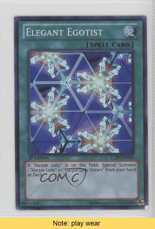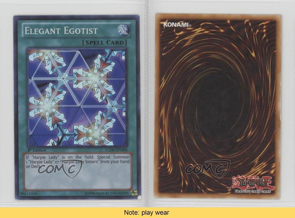 2013 Yu-Gi-Oh! Legendary Collection 4: Joey's World - Mega-Pack [Base] - 1st Edition #LCJW-EN098 Elegant Egotist COMC Item: 49632884 CONDITION NOTE: play wear - YuGiOh Card - Featuring Elegant Egotist Search for more: 2013 Yu-Gi-Oh! Legendary Collection 4: Joey's World Search for more: 2013 Yu-Gi-Oh! Legendary Collection 4: Joey's World - Mega-Pack [Base] - 1st Edition View all of our Listings Auctions Buy It Now About Us Located in the beautiful Pacific Northwest, COMC (Check Out My Cards) is the world's largest consignment service for trading card singles. More than 10,000 people have used our consignment service to list over 50 million trading cards. Find out how we can help you consign your items on eBay by contacting us through eBay messaging. COMC -- "The Safe & Easy Way to Buy & Sell" Raw Condition for Modern Cards Unless otherwise noted, raw modern cards are listed in Near Mint-Mint condition or better. A NM-MT card appears to be Mint at first glance, but upon closer inspection, may exhibit some of the following: minor print defects (e.g. roller marks, print line, dimple), minor scratches, slight edge wear, and slight corner wear. Centering is clearly visible in the images provided and does not factor into our condition assessment. Raw Condition for Vintage Cards Unless otherwise noted, raw vintage cards are listed in Excellent condition or better. An EX card may exhibit some of the following: minor rounding of corners, surface wear, print defects, light scratches, and slight edge wear/chipping. Centering is clearly visible in the images provided and does not factor into our condition assessment. Domestic Shipping Combined shipping for multiple items is available. To receive combined shipping, please ensure all desired items are in your eBay shopping cart before proceeding to checkout. eBay limits orders to 40 items per order. We automatically combine multiple orders placed on the same day. If you place multiple orders on the same day, please contact us to request a refund of applicable shipping costs. Signature confirmation may be required on invoices over $400. All cards are protected and shipped securely. International Shipping COMC offers eBay's International Shipping (EIS) for international orders under $2,500* (see country exceptions below). All duties and import fees are paid at checkout; in the rare event that there are additional import fees upon delivery, these are borne by the buyer. EIS packages route through a shipping hub in Erlanger, KY before shipping to their final destination. Please note that EIS does not allow for combined shipments. The shipping rates are determined by eBay and cannot be adjusted. *Maximum sale price exceptions: Colombia, Kuwait ($2,000); Taiwan ($1,539); Chile, Costa Rica, Guatemala, Honduras, Trinidad and Tobago ($1,000); Antigua and Barbuda, Aruba, Belize, Dominica, Grenada, Philippines, Saint Kitts and Nevis, Saint Lucia, Montserrat, Turks and Caicos Islands ($500); Dominican Republic, El Salvador ($200). Please request a shipping quote through eBay messaging for orders that exceed the maximum sale price supported by eBay's International Shipping. You will be responsible for all duties and import fees for international orders shipped outside the EIS. All cards are protected and shipped securely. Payment COMC does not accept offers on our cards through our eBay storefront. COMC utilizes eBay’s managed payments system. If you are experiencing difficulties making a payment, please contact eBay for assistance. Return Policy Returns are only accepted on the rare occasion the item is not as described. If you are making a return, please initiate the return process through eBay so a mailing label can be provided for you. Prior to listing, our expert team carefully assessed this item to represent it accurately. Please review the description and high-definition images prior to purchasing to ensure this item meets your satisfaction. We welcome you to contact us if you have further questions about this item. Trust and Integrity COMC carefully assesses each item consigned to us to prevent fraudulent items from entering the marketplace. If you believe an item offered on COMC may be fraudulent, please contact us with details so we can investigate the issue. Items we determine are outside our supported items policy may be removed. Last Modified: 5/16/2025 7:50:25 AM PDT