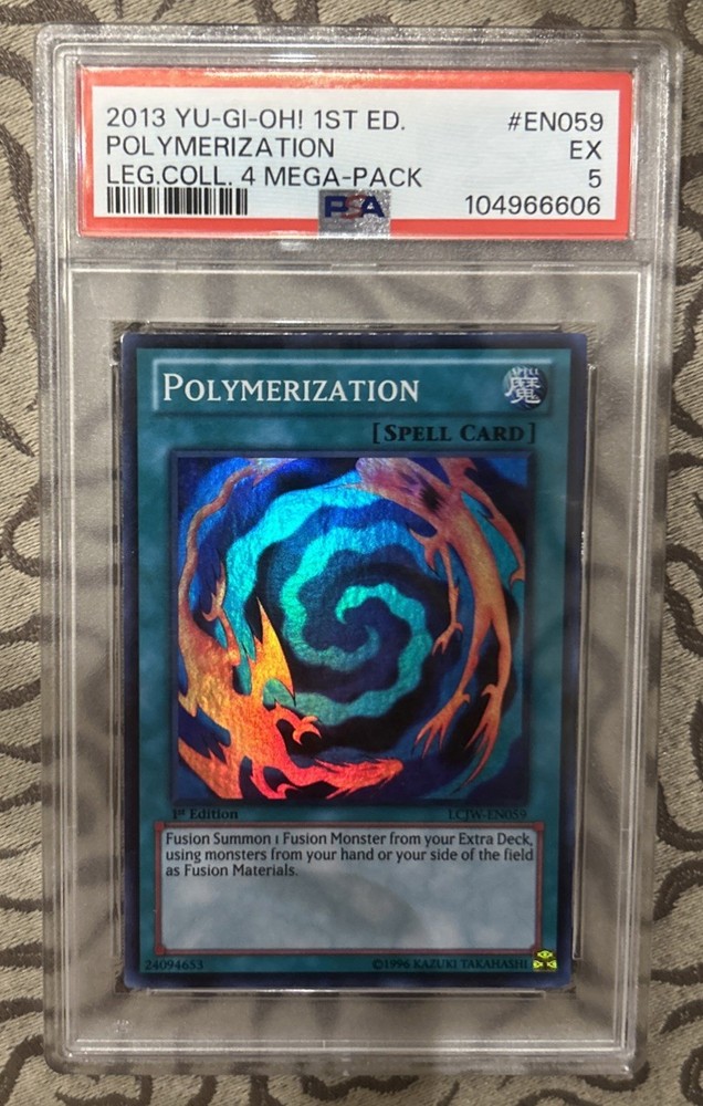 This Polymerization card is a true gem for Yugioh enthusiasts! The 1st Edition Secret Rare makes it stand out, and the PSA 5 grading ensures solid condition. Love the vintage feel and the autograph adds extra value—perfect for serious collectors. A fantastic piece from the 2013 Mega-Pack!
