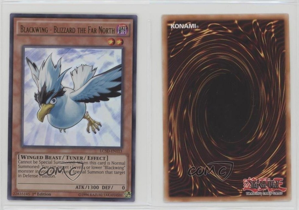 2014 Yu-Gi-Oh! Legendary Collection 5Ds - Mega-Pack [Base] - 1st Edition #LC5D-EN113 UR - Blackwing - Blizzard the Far North COMC Item: 164711786 - YuGiOh Card - Featuring Blackwing - Blizzard the Far North Search for more: 2014 Yu-Gi-Oh! Legendary Collection 5Ds Search for more: 2014 Yu-Gi-Oh! Legendary Collection 5Ds - Mega-Pack [Base] - 1st Edition View all of our Listings Auctions Buy It Now About Us Located in the beautiful Pacific Northwest, COMC (Check Out My Cards) is the world's largest consignment service for trading card singles. More than 10,000 people have used our consignment service to list over 50 million trading cards. Find out how we can help you consign your items on eBay by contacting us through eBay messaging. COMC -- "The Safe & Easy Way to Buy & Sell" Raw Condition for Modern Cards Unless otherwise noted, raw modern cards are listed in Near Mint-Mint condition or better. A NM-MT card appears to be Mint at first glance, but upon closer inspection, may exhibit some of the following: minor print defects (e.g. roller marks, print line, dimple), minor scratches, slight edge wear, and slight corner wear. Centering is clearly visible in the images provided and does not factor into our condition assessment. Raw Condition for Vintage Cards Unless otherwise noted, raw vintage cards are listed in Excellent condition or better. An EX card may exhibit some of the following: minor rounding of corners, surface wear, print defects, light scratches, and slight edge wear/chipping. Centering is clearly visible in the images provided and does not factor into our condition assessment. Domestic Shipping Combined shipping for multiple items is available. To receive combined shipping, please ensure all desired items are in your eBay shopping cart before proceeding to checkout. eBay limits orders to 40 items per order. We automatically combine multiple orders placed on the same day. If you place multiple orders on the same day, please contact us to request a refund of applicable shipping costs. Signature confirmation may be required on invoices over $400. All cards are protected and shipped securely. International Shipping COMC offers eBay's International Shipping (EIS) for international orders under $2,500* (see country exceptions below). All duties and import fees are paid at checkout; in the rare event that there are additional import fees upon delivery, these are borne by the buyer. EIS packages route through a shipping hub in Erlanger, KY before shipping to their final destination. Please note that EIS does not allow for combined shipments. The shipping rates are determined by eBay and cannot be adjusted. *Maximum sale price exceptions: Colombia, Kuwait ($2,000); Taiwan ($1,539); Chile, Costa Rica, Guatemala, Honduras, Trinidad and Tobago ($1,000); Antigua and Barbuda, Aruba, Belize, Dominica, Grenada, Philippines, Saint Kitts and Nevis, Saint Lucia, Montserrat, Turks and Caicos Islands ($500); Dominican Republic, El Salvador ($200). Please request a shipping quote through eBay messaging for orders that exceed the maximum sale price supported by eBay's International Shipping. You will be responsible for all duties and import fees for international orders shipped outside the EIS. All cards are protected and shipped securely. Payment COMC does not accept offers on our cards through our eBay storefront. COMC utilizes eBay’s managed payments system. If you are experiencing difficulties making a payment, please contact eBay for assistance. Return Policy Returns are only accepted on the rare occasion the item is not as described. If you are making a return, please initiate the return process through eBay so a mailing label can be provided for you. Prior to listing, our expert team carefully assessed this item to represent it accurately. Please review the description and high-definition images prior to purchasing to ensure this item meets your satisfaction. We welcome you to contact us if you have further questions about this item. Trust and Integrity COMC carefully assesses each item consigned to us to prevent fraudulent items from entering the marketplace. If you believe an item offered on COMC may be fraudulent, please contact us with details so we can investigate the issue. Items we determine are outside our supported items policy may be removed. Last Modified: 5/9/2025 12:34:25 PM PDT