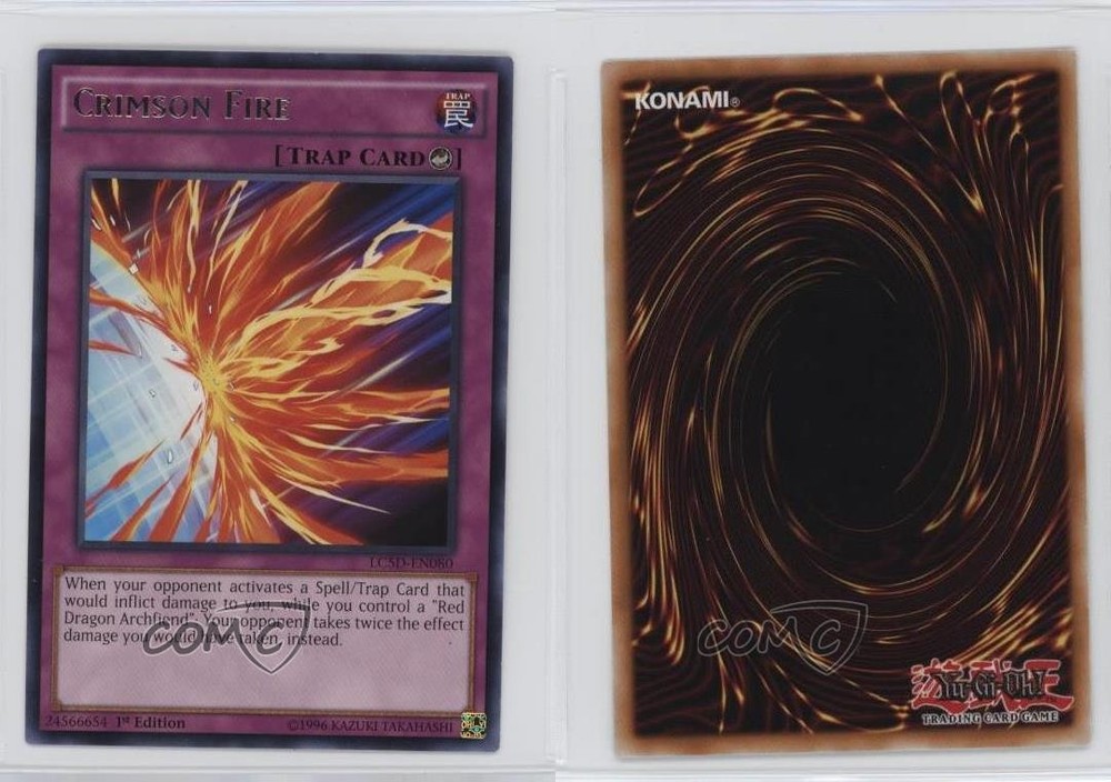 2014 Yu-Gi-Oh! Legendary Collection 5Ds - Mega-Pack [Base] - 1st Edition #LC5D-EN080 Crimson Fire COMC Item: 209236756 - YuGiOh Card - Featuring Crimson Fire Search for more: 2014 Yu-Gi-Oh! Legendary Collection 5Ds Search for more: 2014 Yu-Gi-Oh! Legendary Collection 5Ds - Mega-Pack [Base] - 1st Edition View all of our Listings Auctions Buy It Now About Us Located in the beautiful Pacific Northwest, COMC (Check Out My Cards) is the world's largest consignment service for trading card singles. More than 10,000 people have used our consignment service to list over 50 million trading cards. Find out how we can help you consign your items on eBay by contacting us through eBay messaging. COMC -- "The Safe & Easy Way to Buy & Sell" Raw Condition for Modern Cards Unless otherwise noted, raw modern cards are listed in Near Mint-Mint condition or better. A NM-MT card appears to be Mint at first glance, but upon closer inspection, may exhibit some of the following: minor print defects (e.g. roller marks, print line, dimple), minor scratches, slight edge wear, and slight corner wear. Centering is clearly visible in the images provided and does not factor into our condition assessment. Raw Condition for Vintage Cards Unless otherwise noted, raw vintage cards are listed in Excellent condition or better. An EX card may exhibit some of the following: minor rounding of corners, surface wear, print defects, light scratches, and slight edge wear/chipping. Centering is clearly visible in the images provided and does not factor into our condition assessment. Domestic Shipping Combined shipping for multiple items is available. To receive combined shipping, please ensure all desired items are in your eBay shopping cart before proceeding to checkout. eBay limits orders to 40 items per order. We automatically combine multiple orders placed on the same day. If you place multiple orders on the same day, please contact us to request a refund of applicable shipping costs. Signature confirmation may be required on invoices over $400. All cards are protected and shipped securely. International Shipping COMC offers eBay's International Shipping (EIS) for international orders under $2,500* (see country exceptions below). All duties and import fees are paid at checkout; in the rare event that there are additional import fees upon delivery, these are borne by the buyer. EIS packages route through a shipping hub in Erlanger, KY before shipping to their final destination. Please note that EIS does not allow for combined shipments. The shipping rates are determined by eBay and cannot be adjusted. *Maximum sale price exceptions: Colombia, Kuwait ($2,000); Taiwan ($1,539); Chile, Costa Rica, Guatemala, Honduras, Trinidad and Tobago ($1,000); Antigua and Barbuda, Aruba, Belize, Dominica, Grenada, Philippines, Saint Kitts and Nevis, Saint Lucia, Montserrat, Turks and Caicos Islands ($500); Dominican Republic, El Salvador ($200). Please request a shipping quote through eBay messaging for orders that exceed the maximum sale price supported by eBay's International Shipping. You will be responsible for all duties and import fees for international orders shipped outside the EIS. All cards are protected and shipped securely. Payment COMC does not accept offers on our cards through our eBay storefront. COMC utilizes eBay’s managed payments system. If you are experiencing difficulties making a payment, please contact eBay for assistance. Return Policy Returns are only accepted on the rare occasion the item is not as described. If you are making a return, please initiate the return process through eBay so a mailing label can be provided for you. Prior to listing, our expert team carefully assessed this item to represent it accurately. Please review the description and high-definition images prior to purchasing to ensure this item meets your satisfaction. We welcome you to contact us if you have further questions about this item. Trust and Integrity COMC carefully assesses each item consigned to us to prevent fraudulent items from entering the marketplace. If you believe an item offered on COMC may be fraudulent, please contact us with details so we can investigate the issue. Items we determine are outside our supported items policy may be removed. Last Modified: 6/14/2025 2:25:07 AM PDT