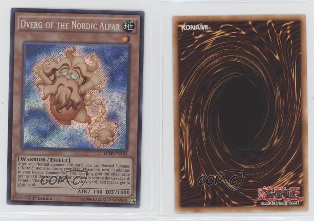 2014 Yu-Gi-Oh! Legendary Collection 5Ds - Mega-Pack [Base] - 1st Edition #LC5D-EN183 SCR - Dverg of the Nordic Alfar COMC Item: 162456313 - YuGiOh Card - Featuring Dverg of the Nordic Alfar Search for more: 2014 Yu-Gi-Oh! Legendary Collection 5Ds Search for more: 2014 Yu-Gi-Oh! Legendary Collection 5Ds - Mega-Pack [Base] - 1st Edition View all of our Listings Auctions Buy It Now About Us Located in the beautiful Pacific Northwest, COMC (Check Out My Cards) is the world's largest consignment service for trading card singles. More than 10,000 people have used our consignment service to list over 50 million trading cards. Find out how we can help you consign your items on eBay by contacting us through eBay messaging. COMC -- "The Safe & Easy Way to Buy & Sell" Raw Condition for Modern Cards Unless otherwise noted, raw modern cards are listed in Near Mint-Mint condition or better. A NM-MT card appears to be Mint at first glance, but upon closer inspection, may exhibit some of the following: minor print defects (e.g. roller marks, print line, dimple), minor scratches, slight edge wear, and slight corner wear. Centering is clearly visible in the images provided and does not factor into our condition assessment. Raw Condition for Vintage Cards Unless otherwise noted, raw vintage cards are listed in Excellent condition or better. An EX card may exhibit some of the following: minor rounding of corners, surface wear, print defects, light scratches, and slight edge wear/chipping. Centering is clearly visible in the images provided and does not factor into our condition assessment. Domestic Shipping Combined shipping for multiple items is available. To receive combined shipping, please ensure all desired items are in your eBay shopping cart before proceeding to checkout. eBay limits orders to 40 items per order. We automatically combine multiple orders placed on the same day. If you place multiple orders on the same day, please contact us to request a refund of applicable shipping costs. Signature confirmation may be required on invoices over $400. All cards are protected and shipped securely. International Shipping COMC offers eBay's International Shipping (EIS) for international orders under $2,500* (see country exceptions below). All duties and import fees are paid at checkout; in the rare event that there are additional import fees upon delivery, these are borne by the buyer. EIS packages route through a shipping hub in Erlanger, KY before shipping to their final destination. Please note that EIS does not allow for combined shipments. The shipping rates are determined by eBay and cannot be adjusted. *Maximum sale price exceptions: Colombia, Kuwait ($2,000); Taiwan ($1,539); Chile, Costa Rica, Guatemala, Honduras, Trinidad and Tobago ($1,000); Antigua and Barbuda, Aruba, Belize, Dominica, Grenada, Philippines, Saint Kitts and Nevis, Saint Lucia, Montserrat, Turks and Caicos Islands ($500); Dominican Republic, El Salvador ($200). Please request a shipping quote through eBay messaging for orders that exceed the maximum sale price supported by eBay's International Shipping. You will be responsible for all duties and import fees for international orders shipped outside the EIS. All cards are protected and shipped securely. Payment COMC does not accept offers on our cards through our eBay storefront. COMC utilizes eBay’s managed payments system. If you are experiencing difficulties making a payment, please contact eBay for assistance. Return Policy Returns are only accepted on the rare occasion the item is not as described. If you are making a return, please initiate the return process through eBay so a mailing label can be provided for you. Prior to listing, our expert team carefully assessed this item to represent it accurately. Please review the description and high-definition images prior to purchasing to ensure this item meets your satisfaction. We welcome you to contact us if you have further questions about this item. Trust and Integrity COMC carefully assesses each item consigned to us to prevent fraudulent items from entering the marketplace. If you believe an item offered on COMC may be fraudulent, please contact us with details so we can investigate the issue. Items we determine are outside our supported items policy may be removed. Last Modified: 5/16/2025 7:50:42 AM PDT