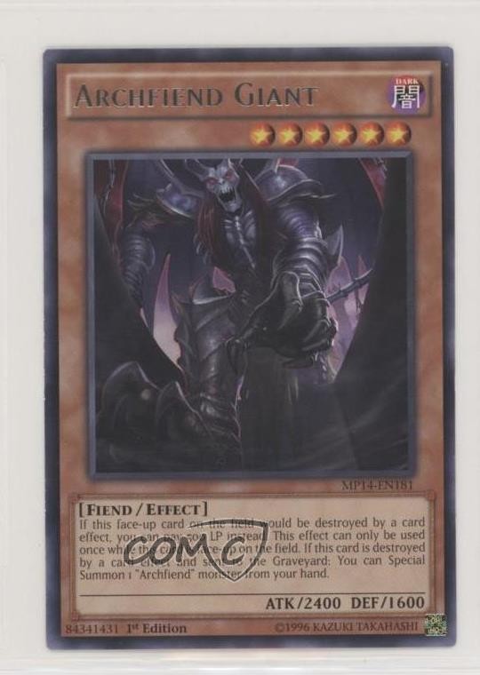 2014 Yu-Gi-Oh! Mega-Tins Mega Pack - [Base] - 1st Edition #MP14-EN181 Archfiend Giant COMC Item: 62783291 - YuGiOh Card - Featuring Archfiend Giant Search for more: 2014 Yu-Gi-Oh! Mega-Tins Mega Pack Search for more: 2014 Yu-Gi-Oh! Mega-Tins Mega Pack - [Base] - 1st Edition View all of our Listings Auctions Buy It Now About Us Located in the beautiful Pacific Northwest, COMC (Check Out My Cards) is the world's largest consignment service for trading card singles. More than 10,000 people have used our consignment service to list over 50 million trading cards. Find out how we can help you consign your items on eBay by contacting us through eBay messaging. COMC -- "The Safe & Easy Way to Buy & Sell" Raw Condition for Modern Cards Unless otherwise noted, raw modern cards are listed in Near Mint-Mint condition or better. A NM-MT card appears to be Mint at first glance, but upon closer inspection, may exhibit some of the following: minor print defects (e.g. roller marks, print line, dimple), minor scratches, slight edge wear, and slight corner wear. Centering is clearly visible in the images provided and does not factor into our condition assessment. Raw Condition for Vintage Cards Unless otherwise noted, raw vintage cards are listed in Excellent condition or better. An EX card may exhibit some of the following: minor rounding of corners, surface wear, print defects, light scratches, and slight edge wear/chipping. Centering is clearly visible in the images provided and does not factor into our condition assessment. Domestic Shipping Combined shipping for multiple items is available. To receive combined shipping, please ensure all desired items are in your eBay shopping cart before proceeding to checkout. eBay limits orders to 40 items per order. We automatically combine multiple orders placed on the same day. If you place multiple orders on the same day, please contact us to request a refund of applicable shipping costs. Signature confirmation may be required on invoices over $400. All cards are protected and shipped securely. International Shipping COMC offers eBay's International Shipping (EIS) for international orders under $2,500* (see country exceptions below). All duties and import fees are paid at checkout; in the rare event that there are additional import fees upon delivery, these are borne by the buyer. EIS packages route through a shipping hub in Erlanger, KY before shipping to their final destination. Please note that EIS does not allow for combined shipments. The shipping rates are determined by eBay and cannot be adjusted. *Maximum sale price exceptions: Colombia, Kuwait ($2,000); Taiwan ($1,539); Chile, Costa Rica, Guatemala, Honduras, Trinidad and Tobago ($1,000); Antigua and Barbuda, Aruba, Belize, Dominica, Grenada, Philippines, Saint Kitts and Nevis, Saint Lucia, Montserrat, Turks and Caicos Islands ($500); Dominican Republic, El Salvador ($200). Please request a shipping quote through eBay messaging for orders that exceed the maximum sale price supported by eBay's International Shipping. You will be responsible for all duties and import fees for international orders shipped outside the EIS. All cards are protected and shipped securely. Payment COMC does not accept offers on our cards through our eBay storefront. COMC utilizes eBay’s managed payments system. If you are experiencing difficulties making a payment, please contact eBay for assistance. Return Policy Returns are only accepted on the rare occasion the item is not as described. If you are making a return, please initiate the return process through eBay so a mailing label can be provided for you. Prior to listing, our expert team carefully assessed this item to represent it accurately. Please review the description and high-definition images prior to purchasing to ensure this item meets your satisfaction. We welcome you to contact us if you have further questions about this item. Trust and Integrity COMC carefully assesses each item consigned to us to prevent fraudulent items from entering the marketplace. If you believe an item offered on COMC may be fraudulent, please contact us with details so we can investigate the issue. Items we determine are outside our supported items policy may be removed. Last Modified: 6/12/2025 10:04:16 AM PDT