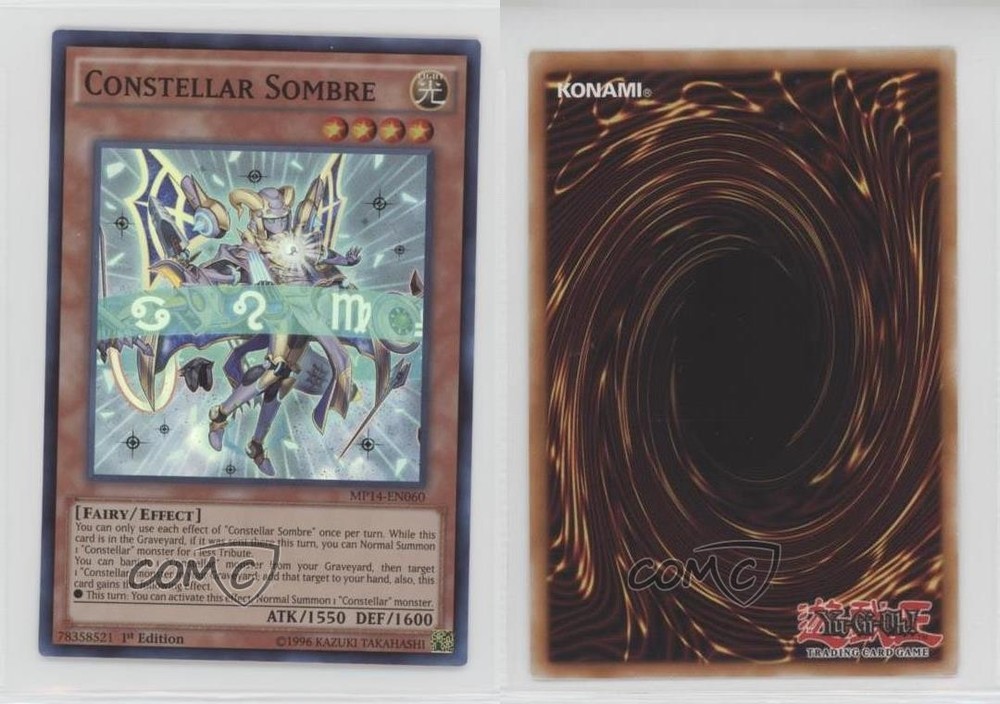 2014 Yu-Gi-Oh! Mega-Tins Mega Pack - [Base] - 1st Edition #MP14-EN060 Constellar Sombre COMC Item: 172308302 - YuGiOh Card - Featuring Constellar Sombre Search for more: 2014 Yu-Gi-Oh! Mega-Tins Mega Pack Search for more: 2014 Yu-Gi-Oh! Mega-Tins Mega Pack - [Base] - 1st Edition View all of our Listings Auctions Buy It Now About Us Located in the beautiful Pacific Northwest, COMC (Check Out My Cards) is the world's largest consignment service for trading card singles. More than 10,000 people have used our consignment service to list over 50 million trading cards. Find out how we can help you consign your items on eBay by contacting us through eBay messaging. COMC -- "The Safe & Easy Way to Buy & Sell" Raw Condition for Modern Cards Unless otherwise noted, raw modern cards are listed in Near Mint-Mint condition or better. A NM-MT card appears to be Mint at first glance, but upon closer inspection, may exhibit some of the following: minor print defects (e.g. roller marks, print line, dimple), minor scratches, slight edge wear, and slight corner wear. Centering is clearly visible in the images provided and does not factor into our condition assessment. Raw Condition for Vintage Cards Unless otherwise noted, raw vintage cards are listed in Excellent condition or better. An EX card may exhibit some of the following: minor rounding of corners, surface wear, print defects, light scratches, and slight edge wear/chipping. Centering is clearly visible in the images provided and does not factor into our condition assessment. Domestic Shipping Combined shipping for multiple items is available. To receive combined shipping, please ensure all desired items are in your eBay shopping cart before proceeding to checkout. eBay limits orders to 40 items per order. We automatically combine multiple orders placed on the same day. If you place multiple orders on the same day, please contact us to request a refund of applicable shipping costs. Signature confirmation may be required on invoices over $400. All cards are protected and shipped securely. International Shipping COMC offers eBay's International Shipping (EIS) for international orders under $2,500* (see country exceptions below). All duties and import fees are paid at checkout; in the rare event that there are additional import fees upon delivery, these are borne by the buyer. EIS packages route through a shipping hub in Erlanger, KY before shipping to their final destination. Please note that EIS does not allow for combined shipments. The shipping rates are determined by eBay and cannot be adjusted. *Maximum sale price exceptions: Colombia, Kuwait ($2,000); Taiwan ($1,539); Chile, Costa Rica, Guatemala, Honduras, Trinidad and Tobago ($1,000); Antigua and Barbuda, Aruba, Belize, Dominica, Grenada, Philippines, Saint Kitts and Nevis, Saint Lucia, Montserrat, Turks and Caicos Islands ($500); Dominican Republic, El Salvador ($200). Please request a shipping quote through eBay messaging for orders that exceed the maximum sale price supported by eBay's International Shipping. You will be responsible for all duties and import fees for international orders shipped outside the EIS. All cards are protected and shipped securely. Payment COMC does not accept offers on our cards through our eBay storefront. COMC utilizes eBay’s managed payments system. If you are experiencing difficulties making a payment, please contact eBay for assistance. Return Policy Returns are only accepted on the rare occasion the item is not as described. If you are making a return, please initiate the return process through eBay so a mailing label can be provided for you. Prior to listing, our expert team carefully assessed this item to represent it accurately. Please review the description and high-definition images prior to purchasing to ensure this item meets your satisfaction. We welcome you to contact us if you have further questions about this item. Trust and Integrity COMC carefully assesses each item consigned to us to prevent fraudulent items from entering the marketplace. If you believe an item offered on COMC may be fraudulent, please contact us with details so we can investigate the issue. Items we determine are outside our supported items policy may be removed. Last Modified: 5/15/2025 9:15:11 PM PDT